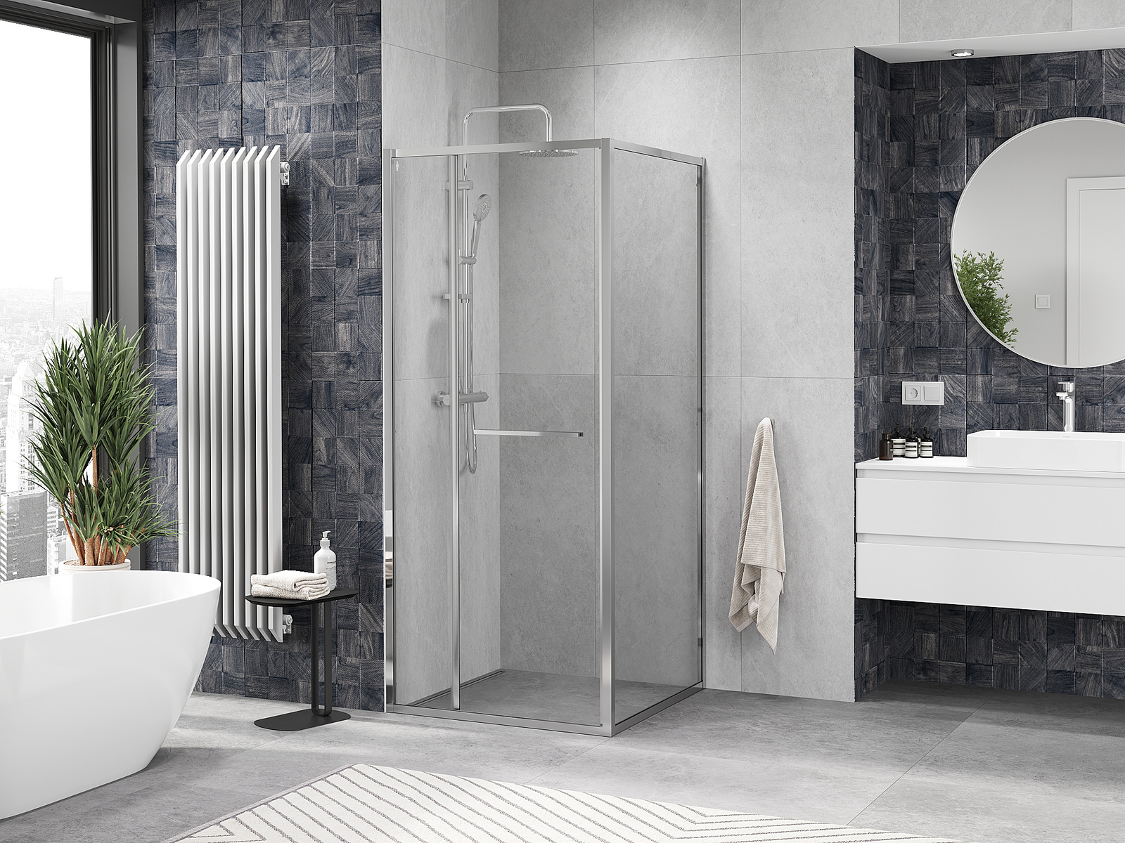 A Mexen Linea egy kivételes, tolóajtós zuhanykabin 85x85 cm méretben, amely tökéletesen illeszkedik bármely fürdőszobába, az univerzális telepítési oldalának köszönhetően. Az átlátszó 6 mm vastag edzett üveg és a krómozott kivitel eleganciát kölcsönöz neki. Az alumínium profil és a könnyen tisztítható bevonat biztosítja a tartósságot és a könnyű tisztán tartást. Rendelkezik a fali egyenlőtlenségek kiegyenlítési és szélesség állítási funkciójával, és a zuhanytálcára vagy csempére történő telepítés lehetősége nagyobb rugalmasságot biztosít. Továbbá felszerelt mágneses szalaggal és elasztomer tömítésekkel a víz elvezetéséhez, ami kiváló tömítést garantál.