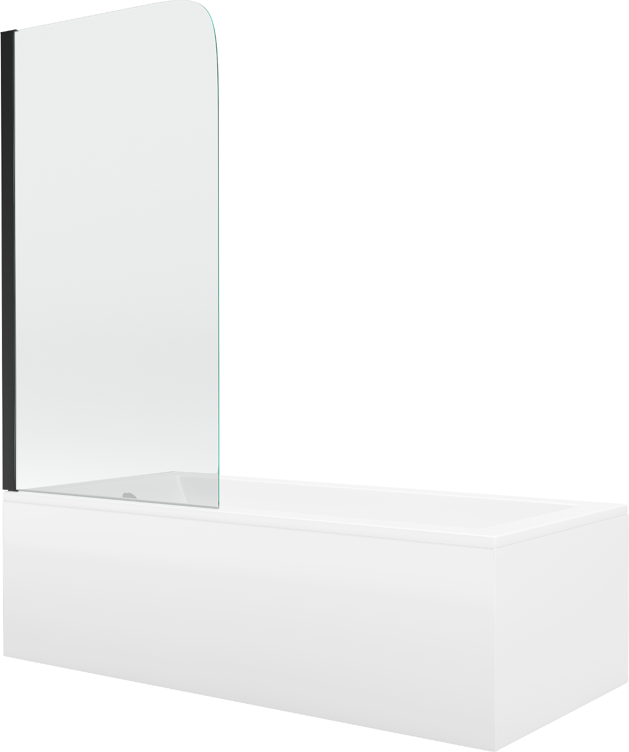 Mexen Cubik téglalap alakú kád 150 x 70 cm burkolattal és 1-szárnyú paravánnal 70 cm, átlátszó, fekete - 550315070X9007017000