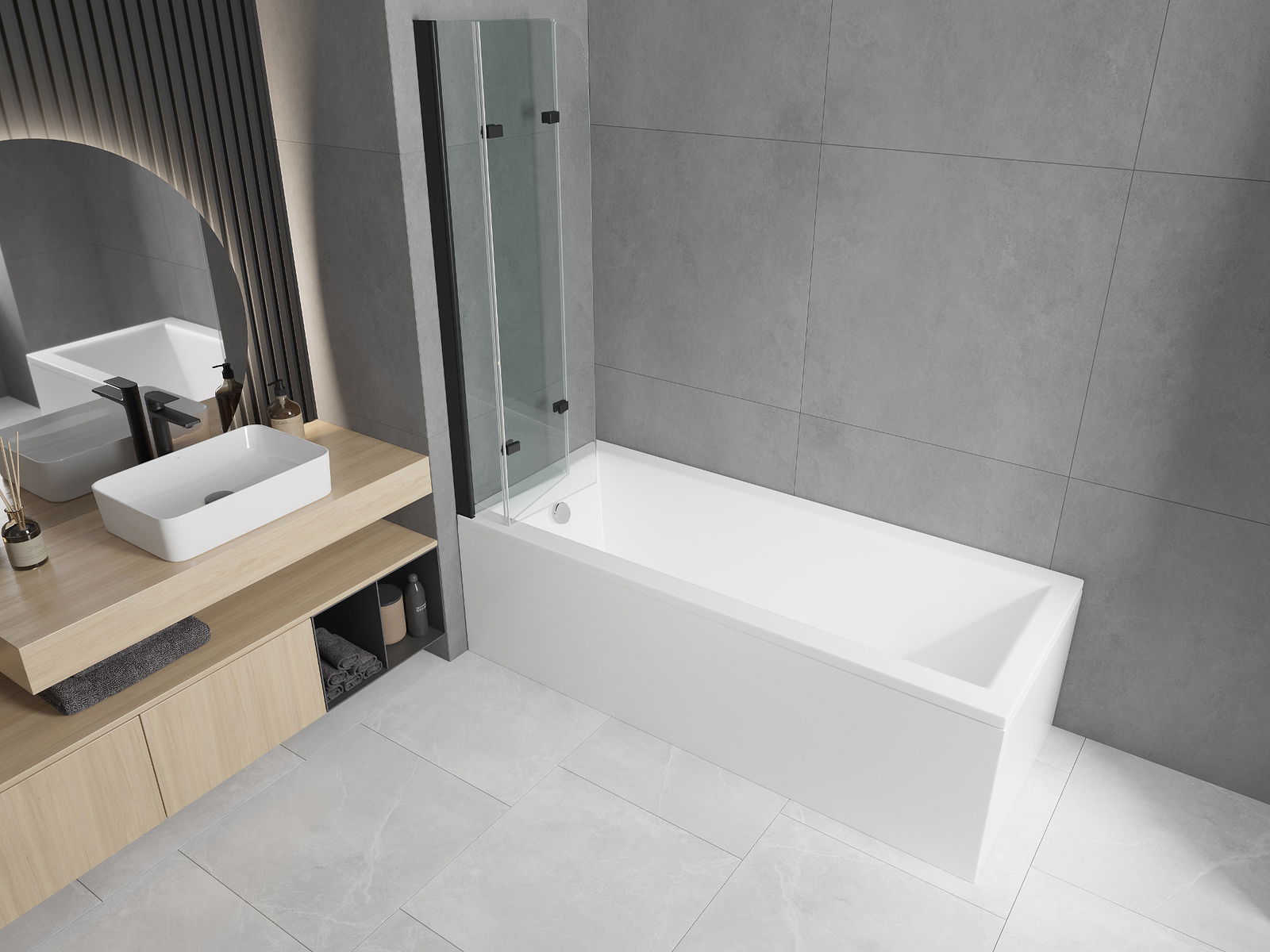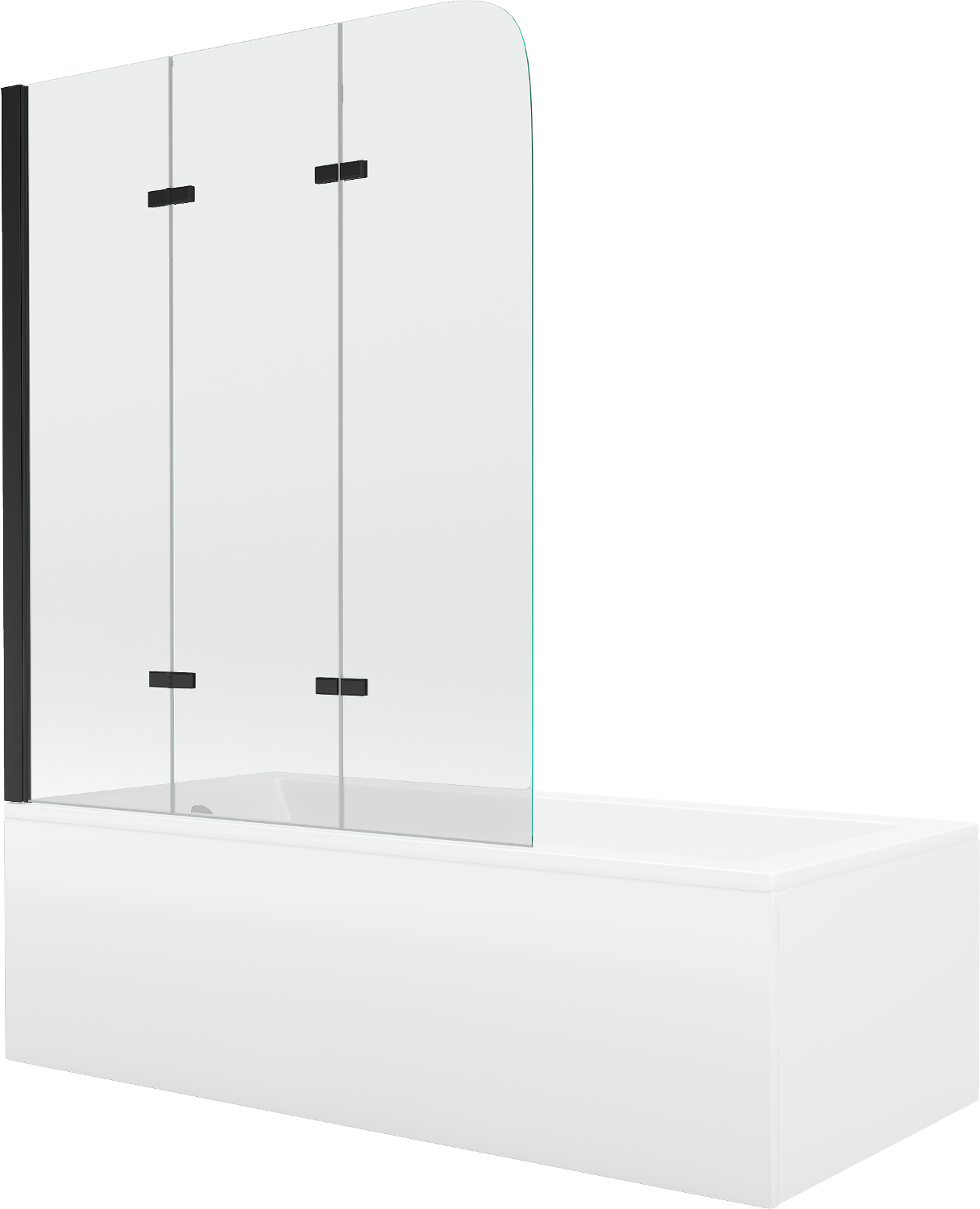Mexen Cubik téglalap alakú kád 150 x 70 cm burkolattal és 3-szárnyas 120 cm-es paravánnal, átlátszó, fekete - 550315070X9012037?