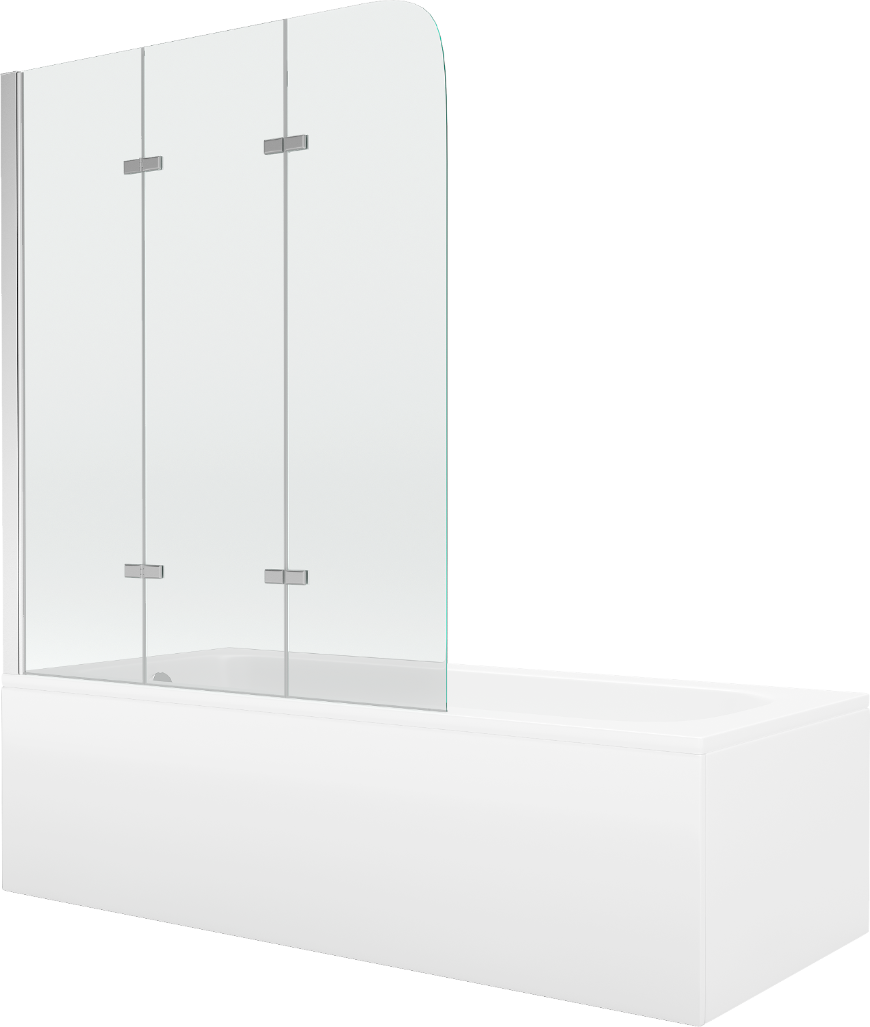 Mexen Vega téglalap alakú kád 150 x 70 cm burkolattal és 3-szárnyú paravánnal 120 cm, átlátszó, króm - 550115070X9012030100