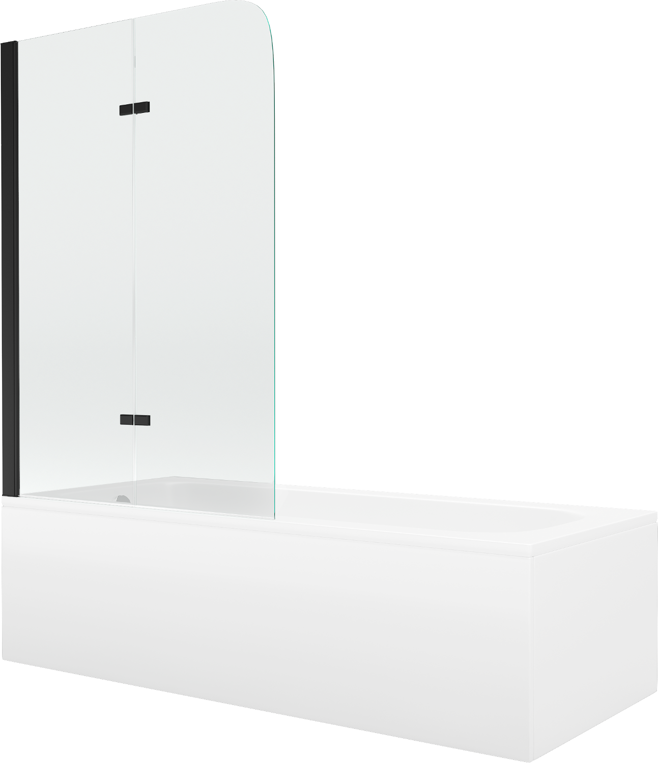 Mexen Vega téglalap alakú kád 160 x 70 cm burkolattal és 2-szárnyas paravánnal 80 cm, átlátszó, fekete - 550116070X9008027000