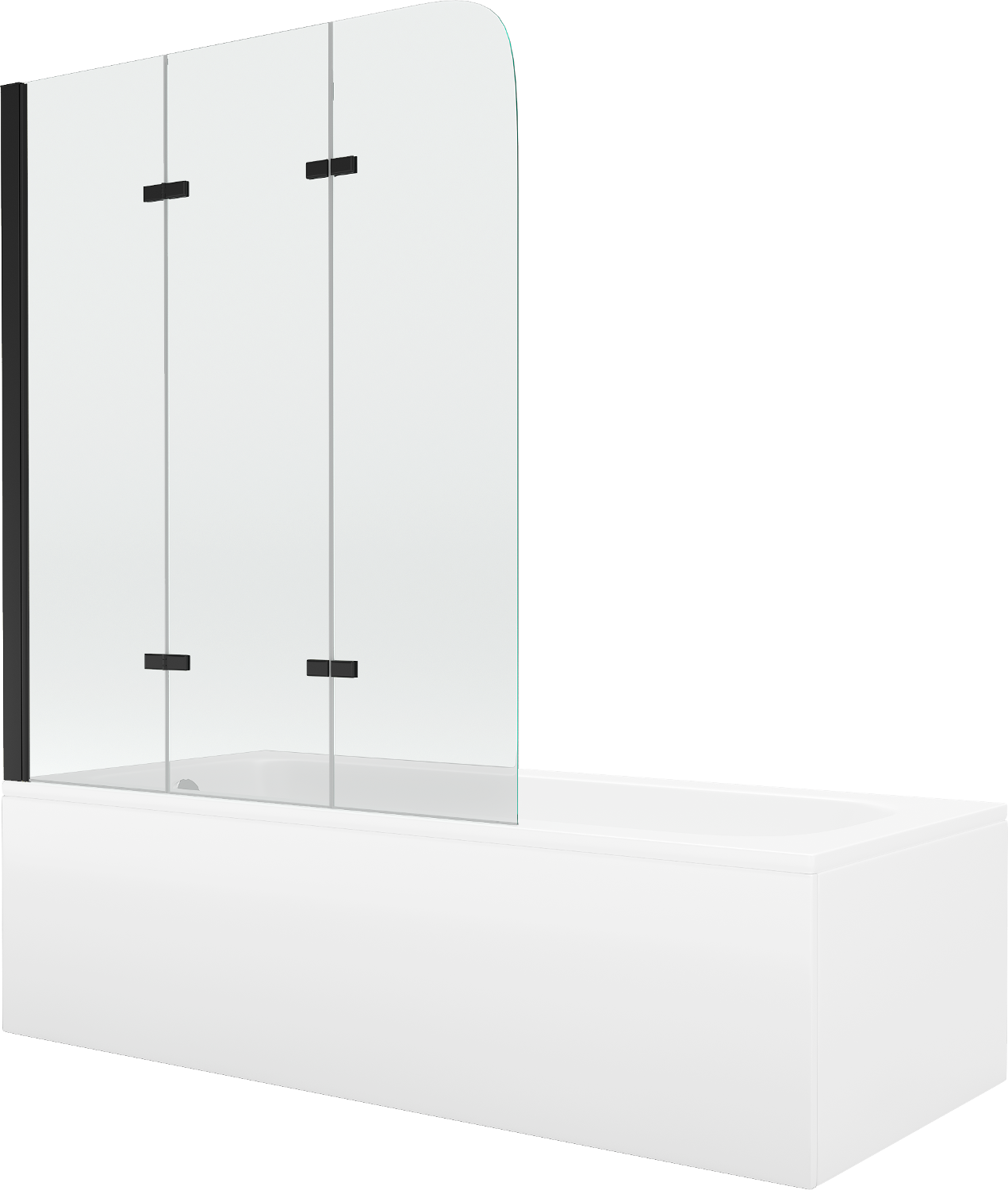 Mexen Vega téglalap alakú 170 x 70 cm-es kád burkolattal és 3 szárnyú 120 cm-es paravánnal, átlátszó, fekete - 550117070X901203?