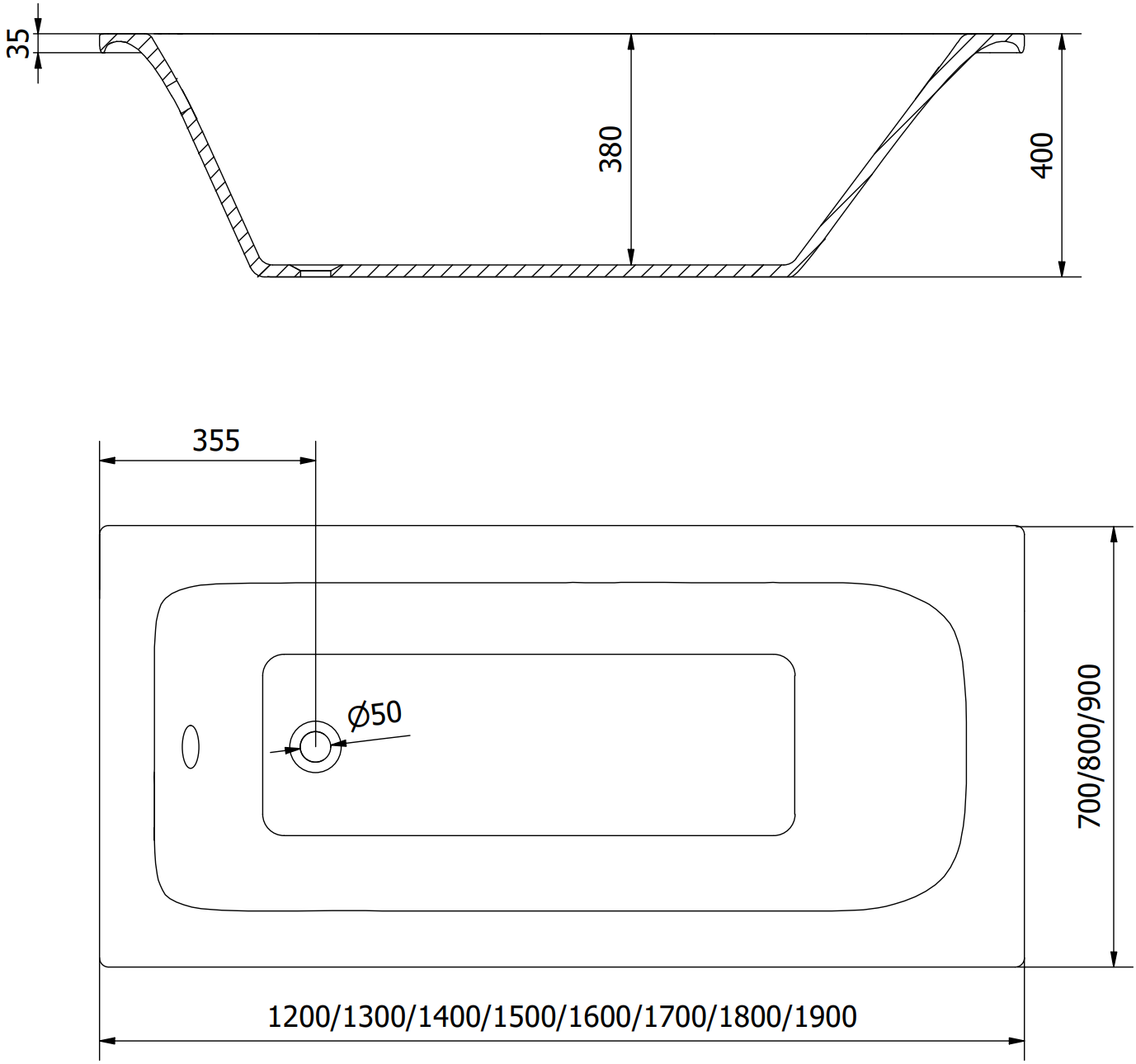 Burkolat: 170 cm (elülső panel), 70 cm (oldalsó panel)