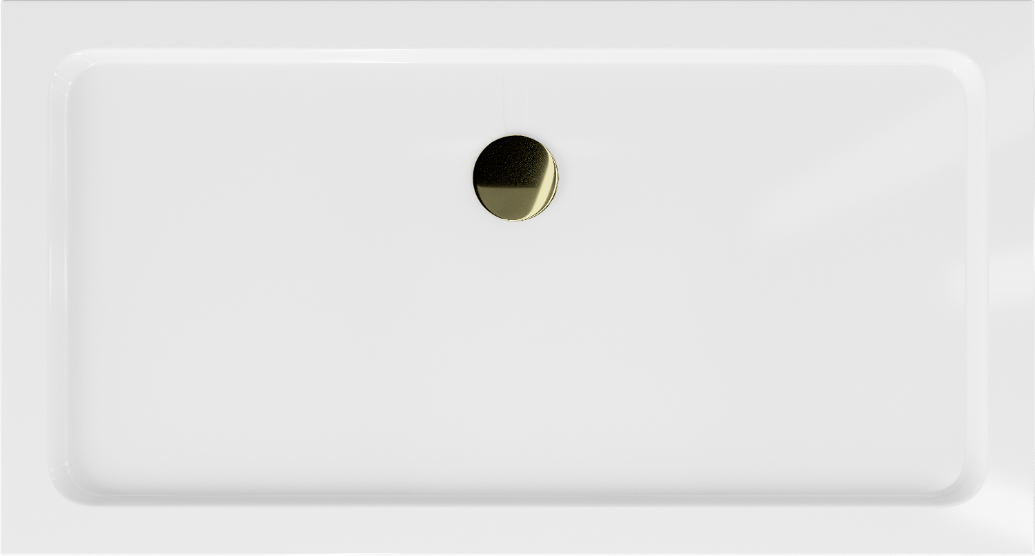 Mexen Flat téglalap alakú, vékony zuhanytálca 140 x 70 cm, fehér, arany szifonnal - 40107014G