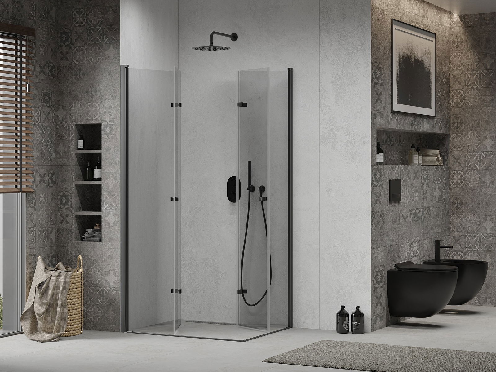 Mexen Lima Duo 90 x 80 cm-es összecsukható zuhanykabin, átlátszó, fekete - 856-090-080-70-00-02