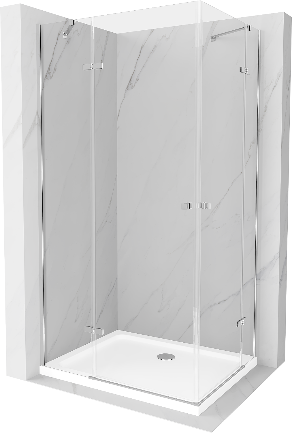 Mexen Roma Duo nyílóajtós zuhanykabin 90 x 80 cm, átlátszó, króm + Flat zuhanytálca - 854-090-080-01-02-4010