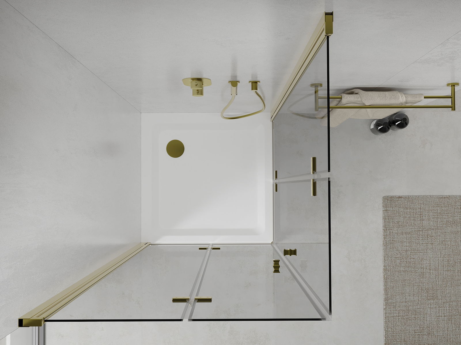 Mexen Lima Duo összecsukható zuhanykabin 70 x 70 cm, átlátszó, arany + Flat zuhanytálca - 856-070-070-50-02-4010G