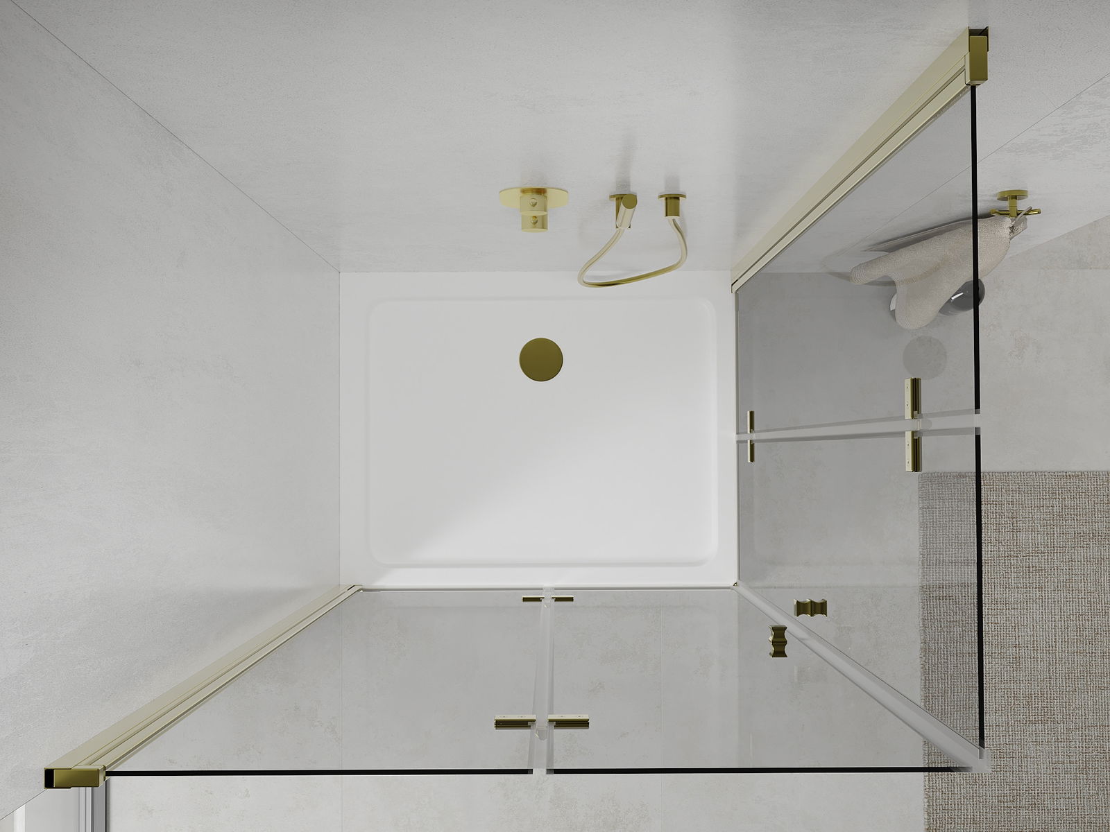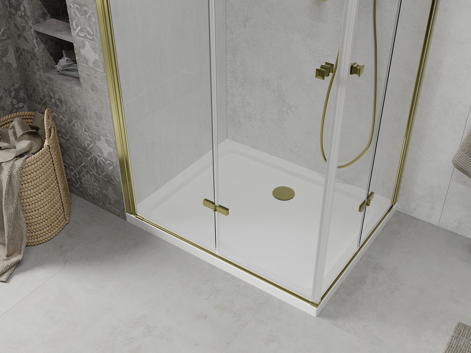 Mexen Lima Duo összecsukható zuhanykabin 100 x 90 cm, átlátszó, arany + Flat zuhanytálca - 856-100-090-50-02-4010G