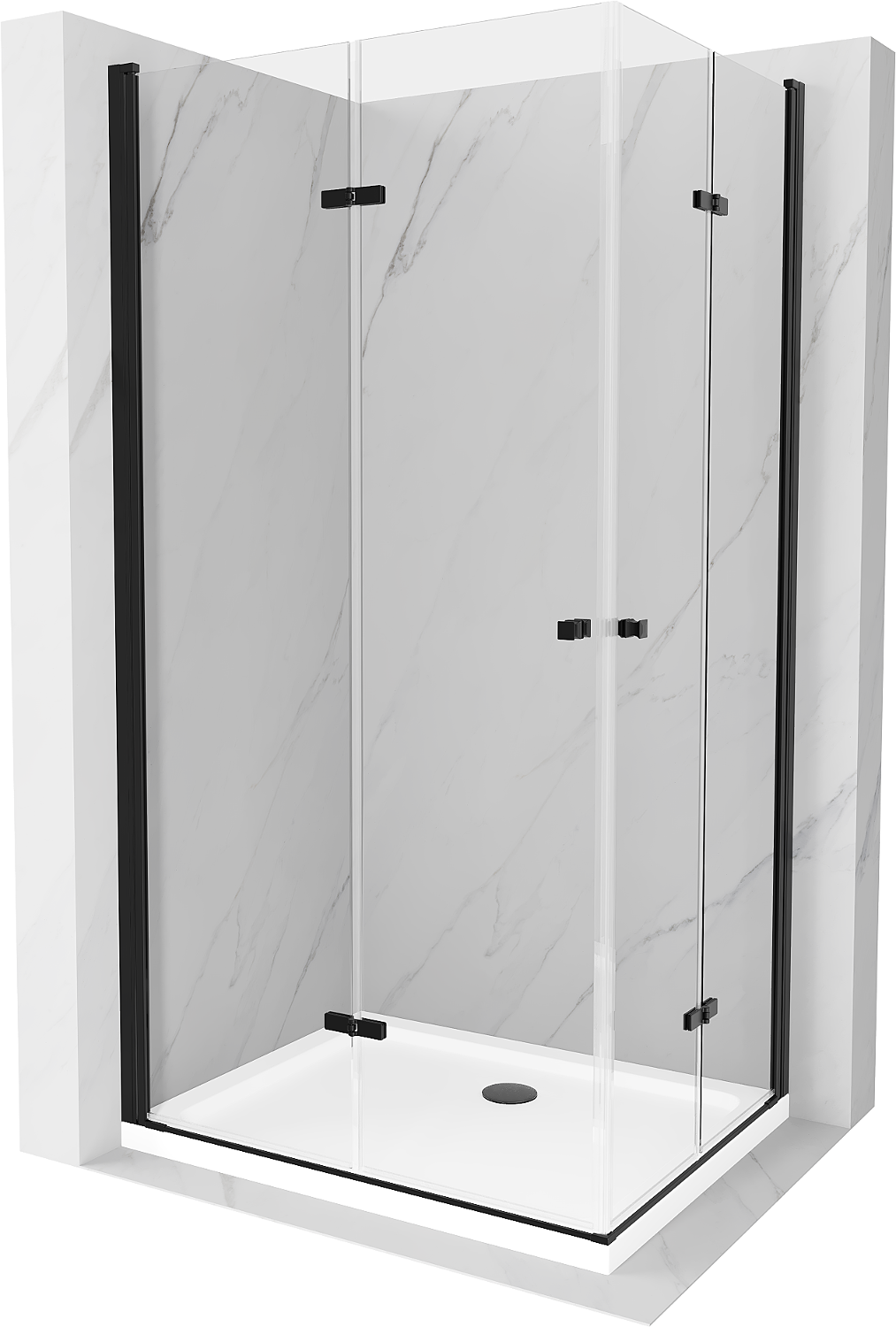 Mexen Lima Duo összecsukható zuhanykabin 100 x 90 cm, átlátszó, fekete + Flat zuhanytálca - 856-100-090-70-02-4010B