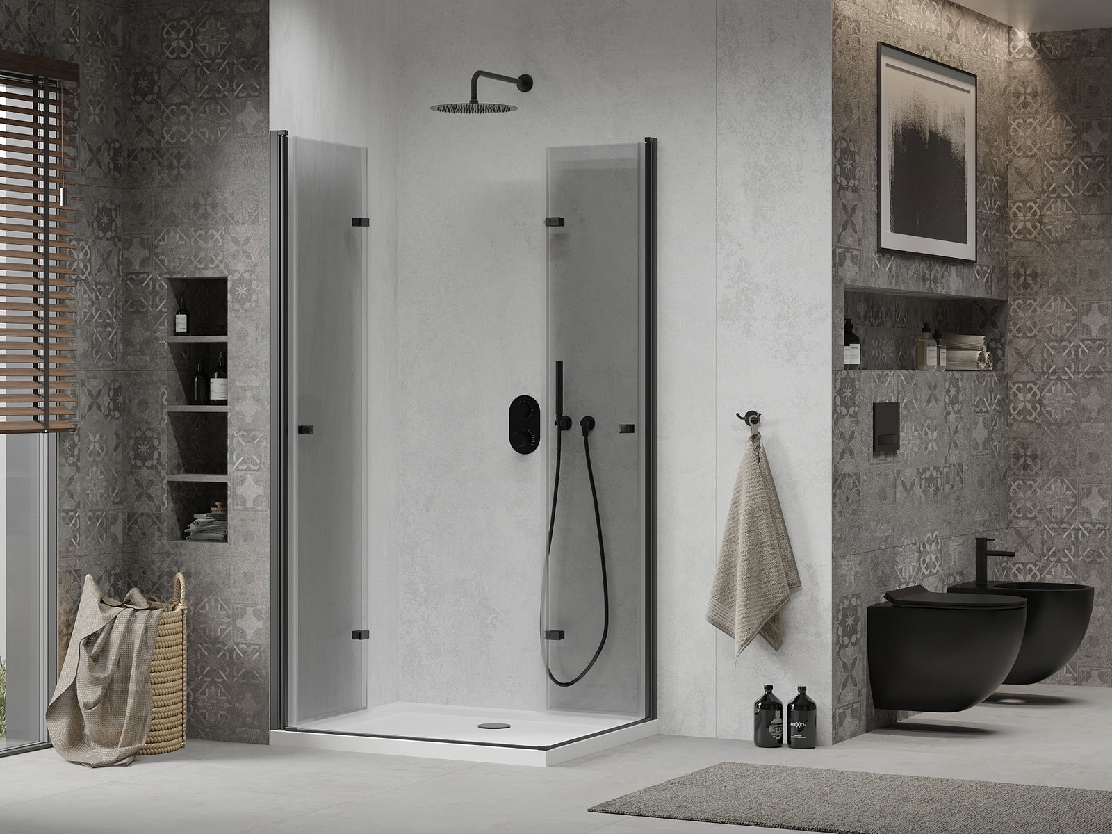 A praktikus és kényelmes fogantyú tartós és ellenálló fémből készült. A divatos forma a profilok színéhez igazított kivitelezéssel együtt modern és stílusos megjelenést kölcsönöz az egésznek, kiemelve minden fürdőszoba esztétikáját.