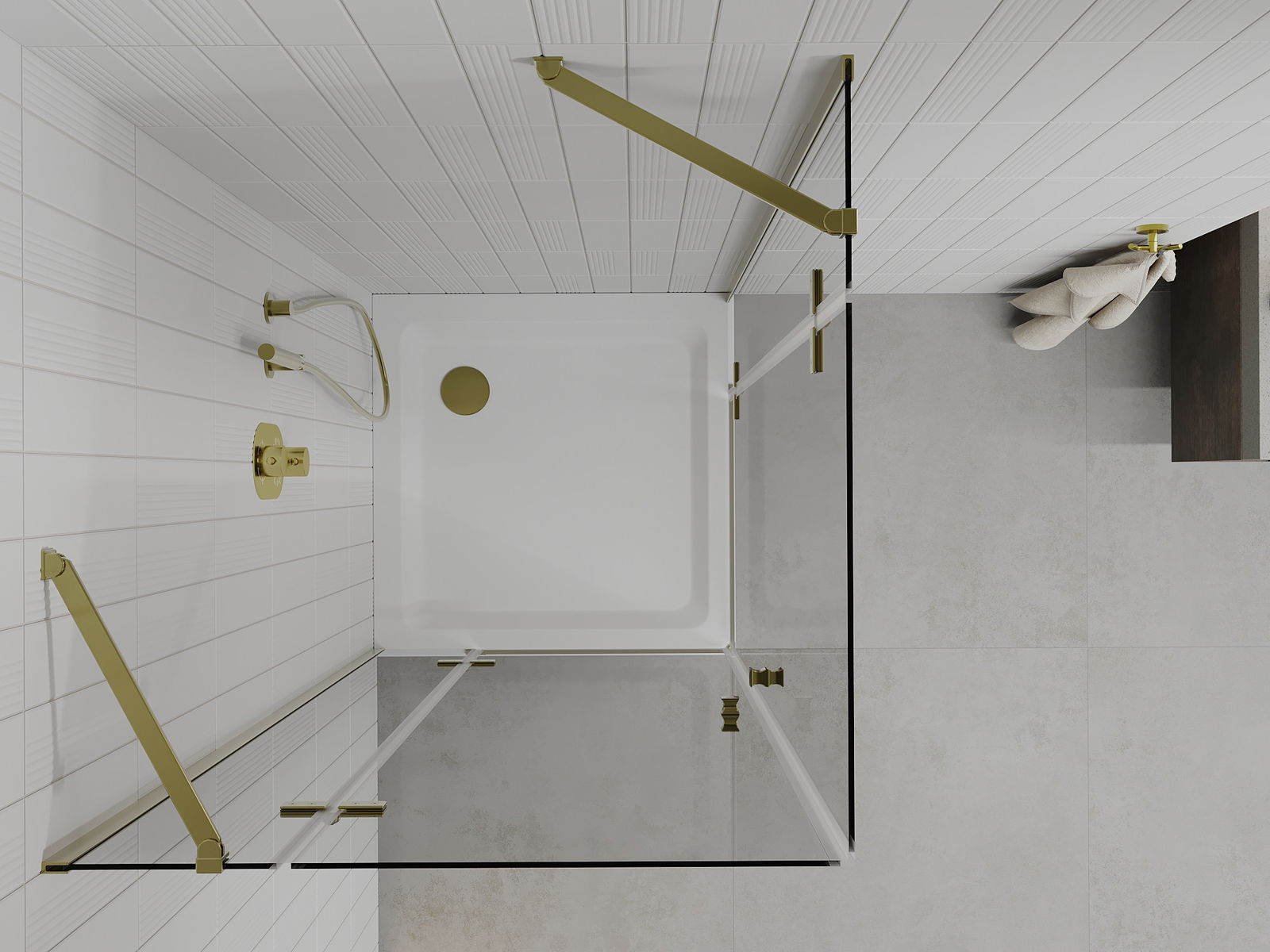 Mexen Roma Duo zuhanykabin nyíló ajtóval 80 x 80 cm, átlátszó, arany + Flat zuhanytálca - 854-080-080-50-02-4010G