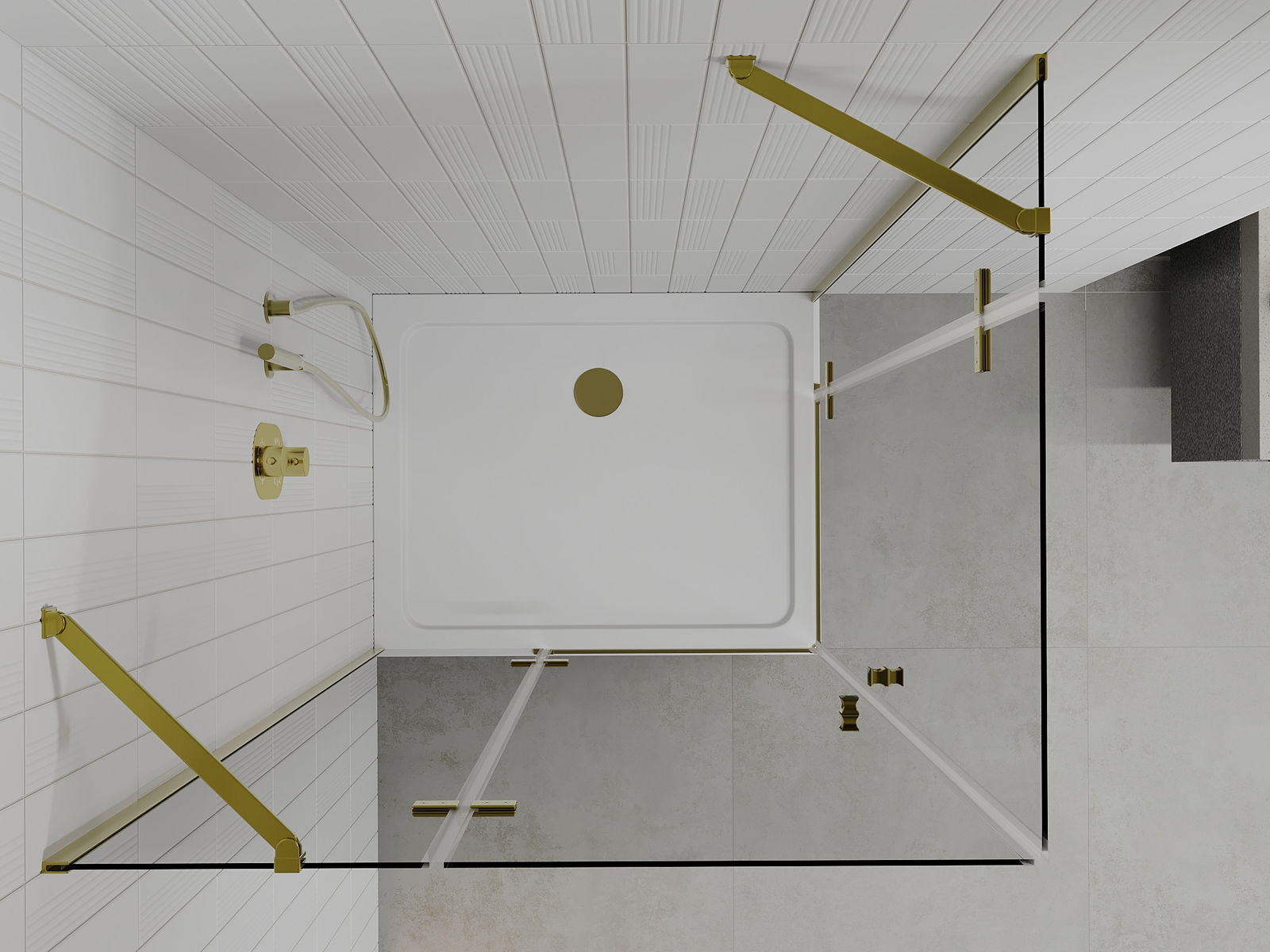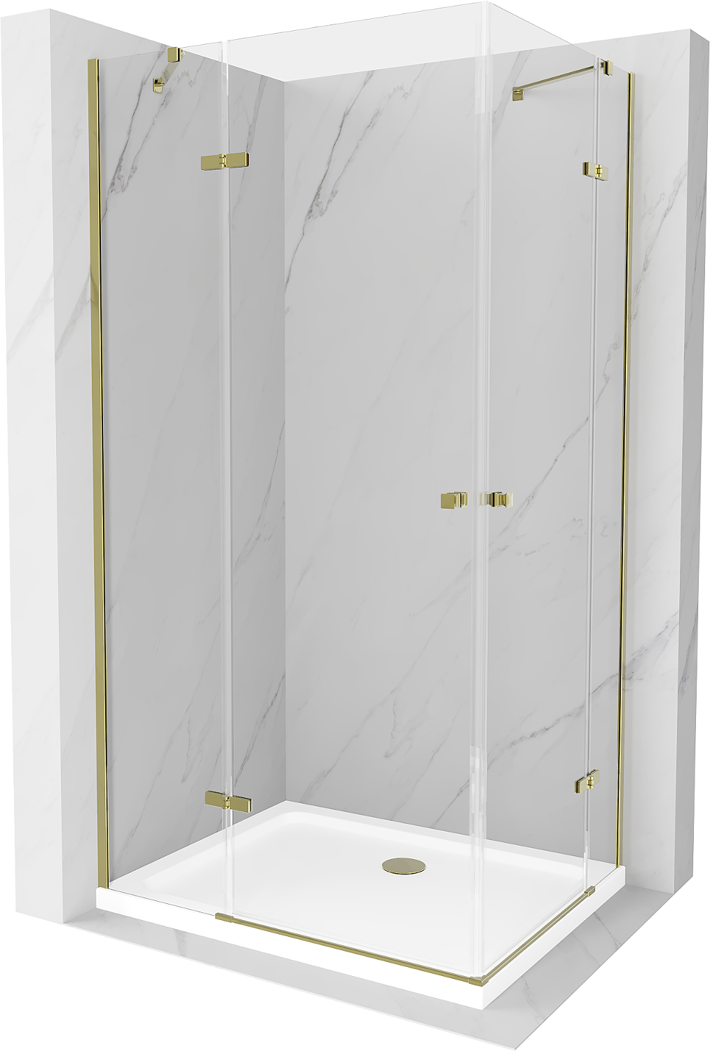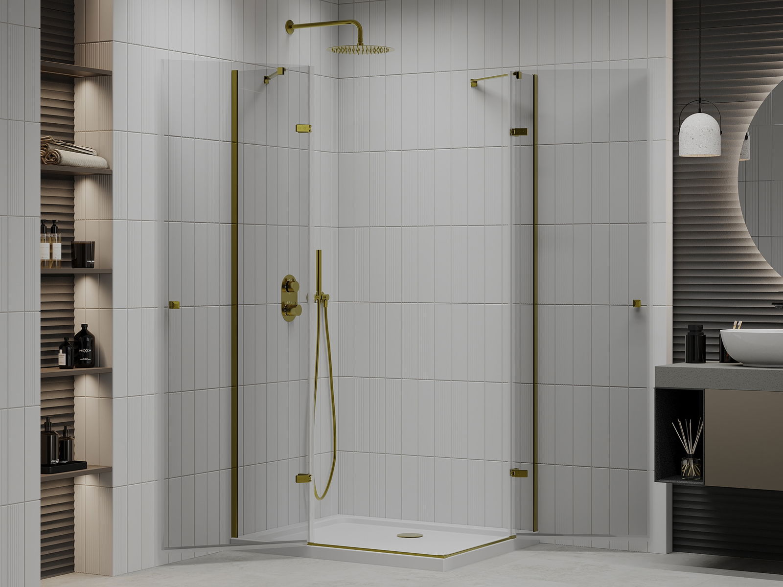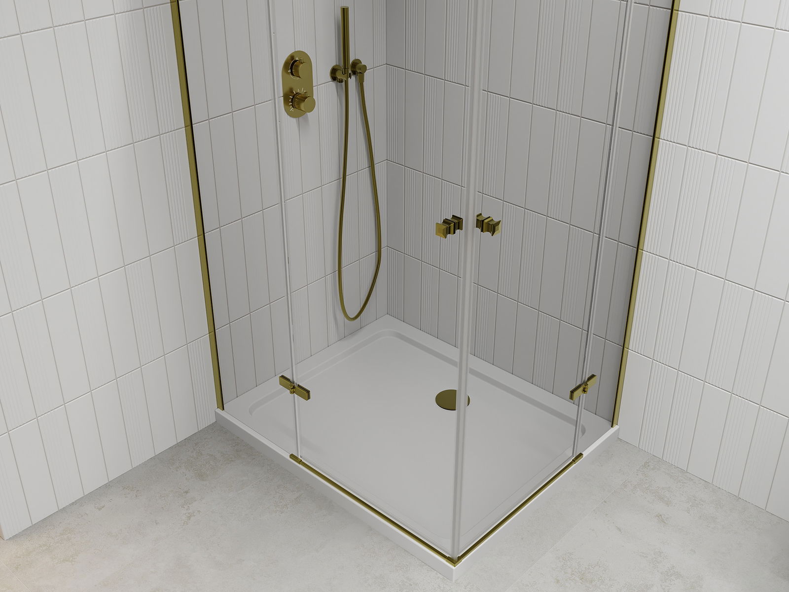 Mexen Roma Duo zuhanykabin nyíló ajtóval 100 x 90 cm, átlátszó, arany + Flat zuhanytálca - 854-100-090-50-02-4010G
