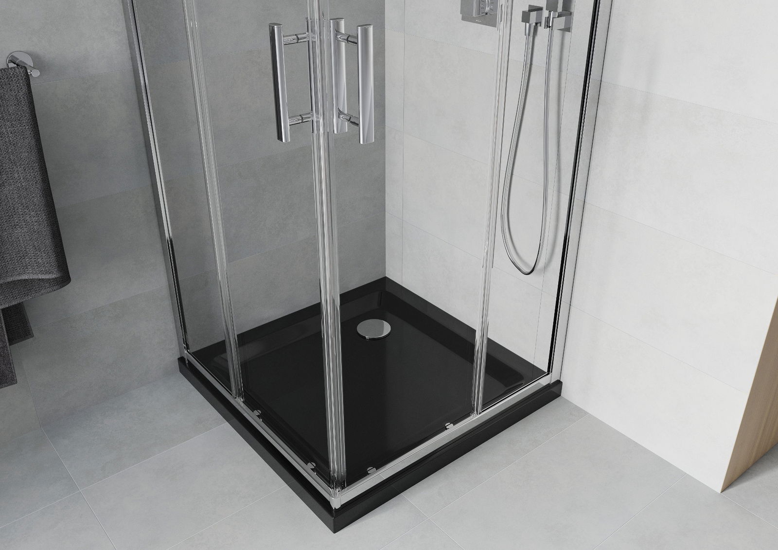 Mexen Rio négyzet alakú zuhanykabin 80 x 80 cm, átlátszó, króm + Flat zuhanytálca, fekete - 860-080-080-01-00-4070