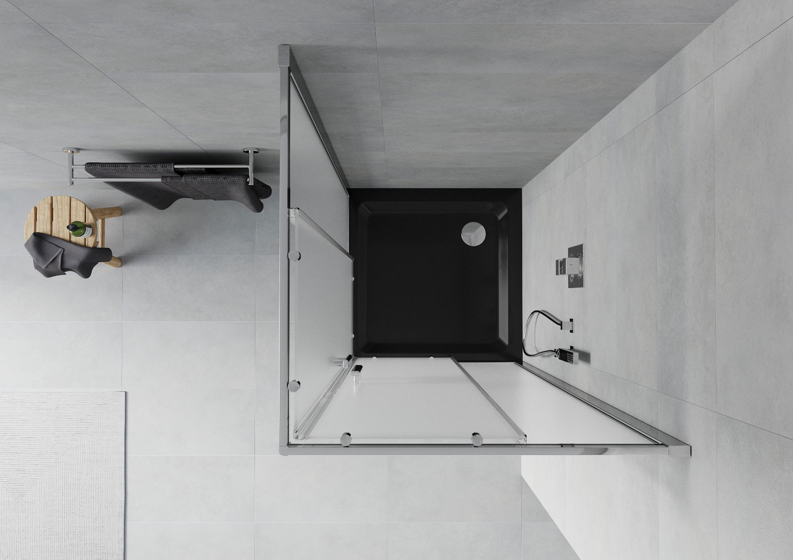 Mexen Rio négyzet alakú zuhanykabin 80 x 80 cm, jégvirág, króm + Flat zuhanytálca, fekete - 860-080-080-01-30-4070