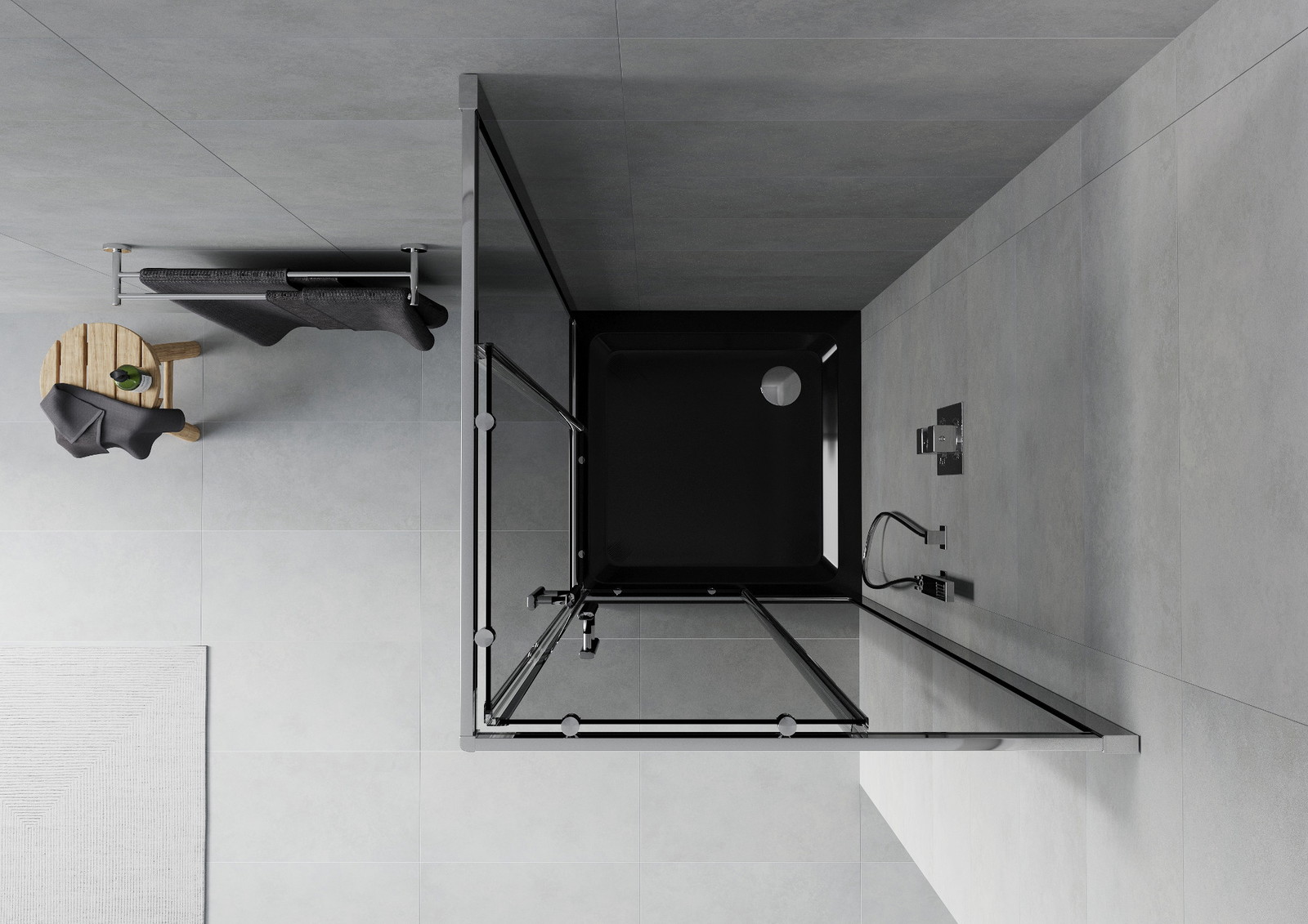 Mexen Rio 80 x 80 cm-es négyzet alakú zuhanykabin, grafit, króm + Flat fekete zuhanytálca - 860-080-080-01-40-4070