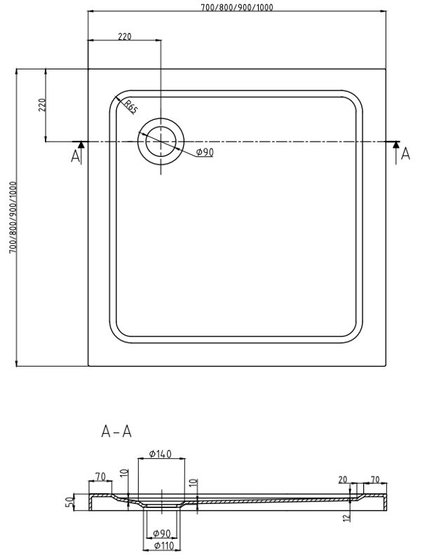 A zuhanykabinok, ajtók és válaszfalak alapesetben meghatározott méretű zuhanytálcákra történő szerelésre alkalmasak. Ezek a méretek szerepelnek a termék nevében vagy leírásában. Fontos azonban tudni, hogy az elemek tényleges méretei kismértékben eltérhetnek a névleges értékektől. Közvetlenül a padlóra történő szerelés esetén javasoljuk a külső méretek és az elemek elrendezésének pontos ellenőrzését a műszaki rajz alapján.