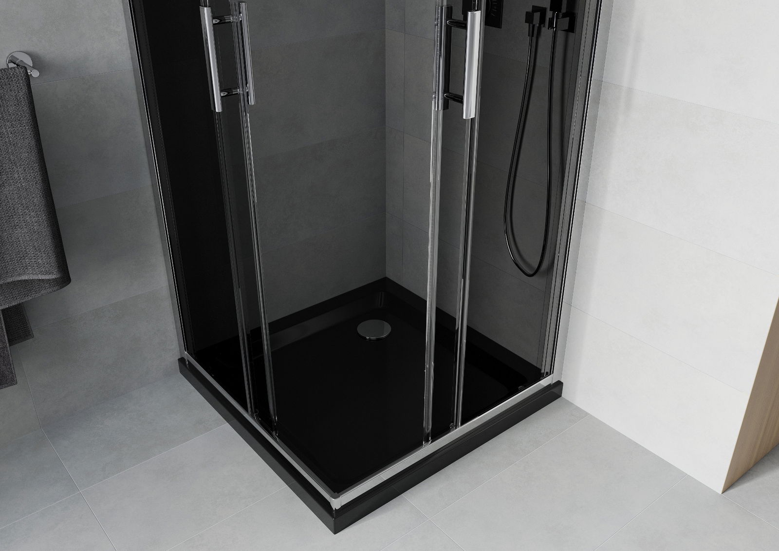 Mexen Rio négyzet alakú zuhanykabin 80 x 80 cm, grafit, króm + Flat zuhanytálca, fekete - 860-080-080-01-40-4070