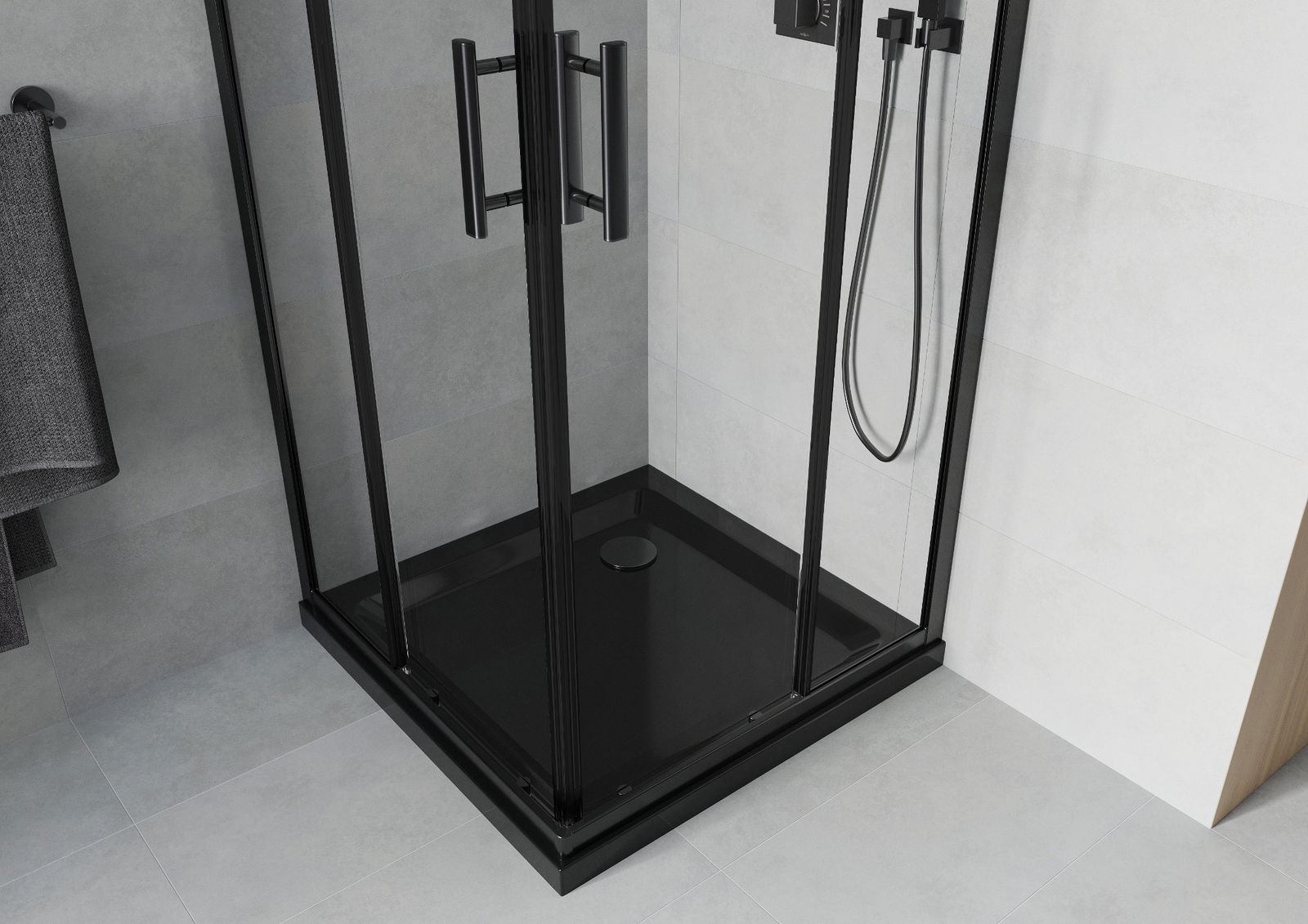 Mexen Rio négyzet alakú zuhanykabin 90 x 90 cm, átlátszó, fekete + Flat zuhanytálca, fekete - 860-090-090-70-00-4070B