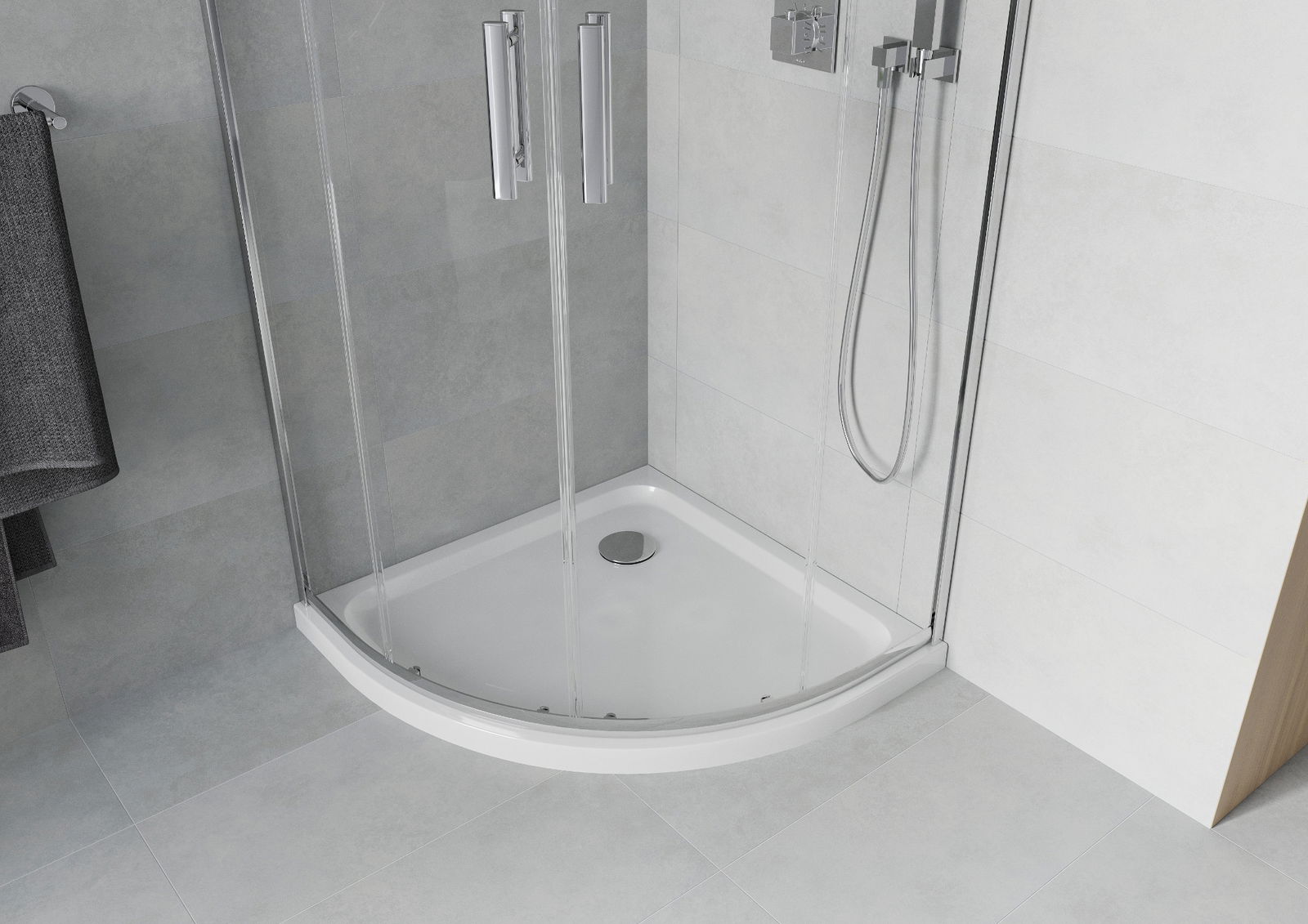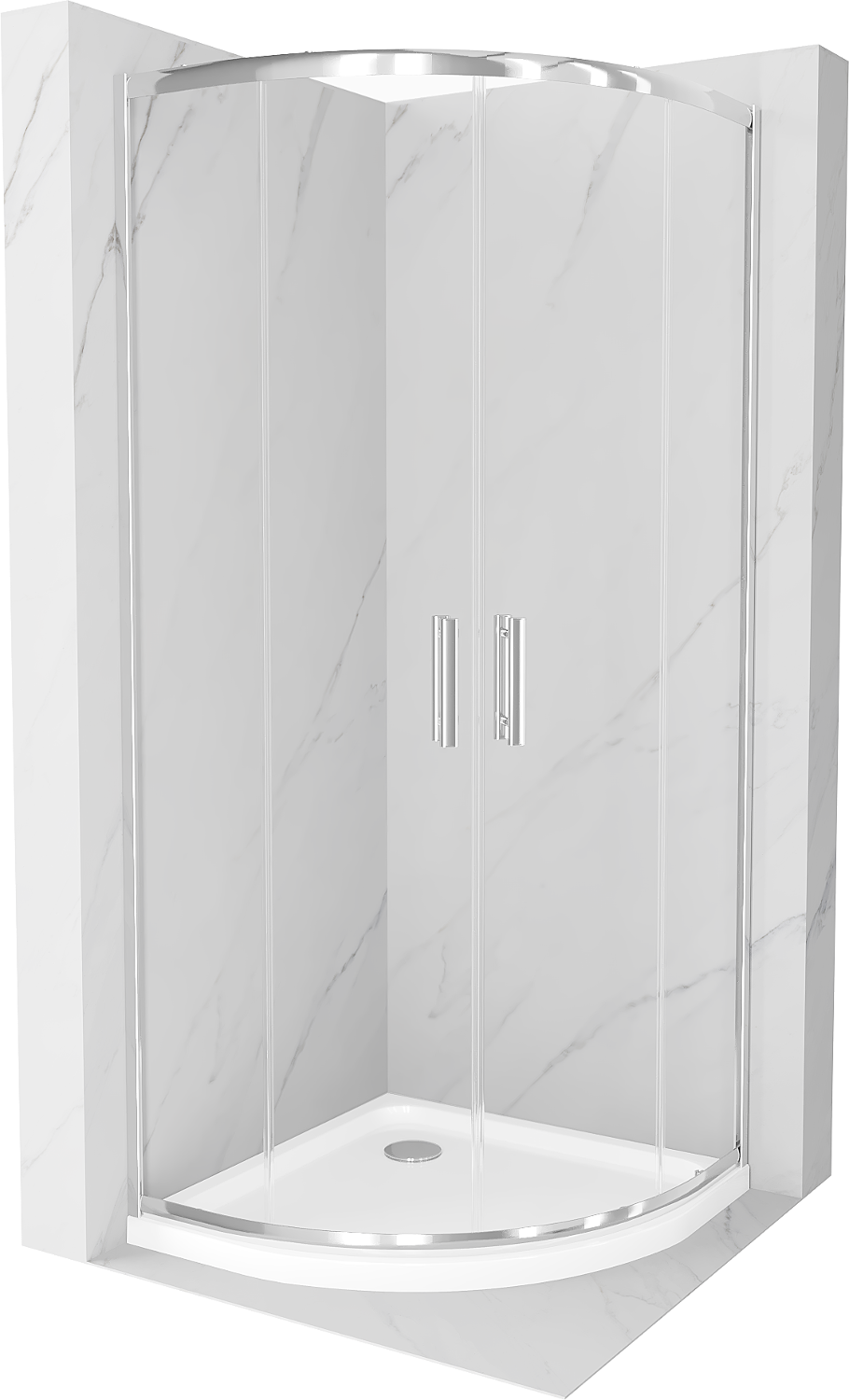 Mexen Rio félköríves zuhanykabin 80 x 80 cm, átlátszó, króm + Flat zuhanytálca, fehér - 863-080-080-01-00-4110