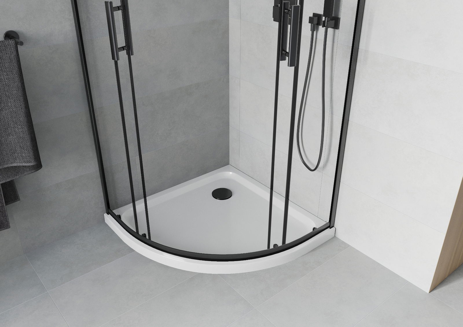 Mexen Rio félköríves zuhanykabin 90 x 90 cm, átlátszó, fekete + Flat zuhanytálca, fehér - 863-090-090-70-00-4110B
