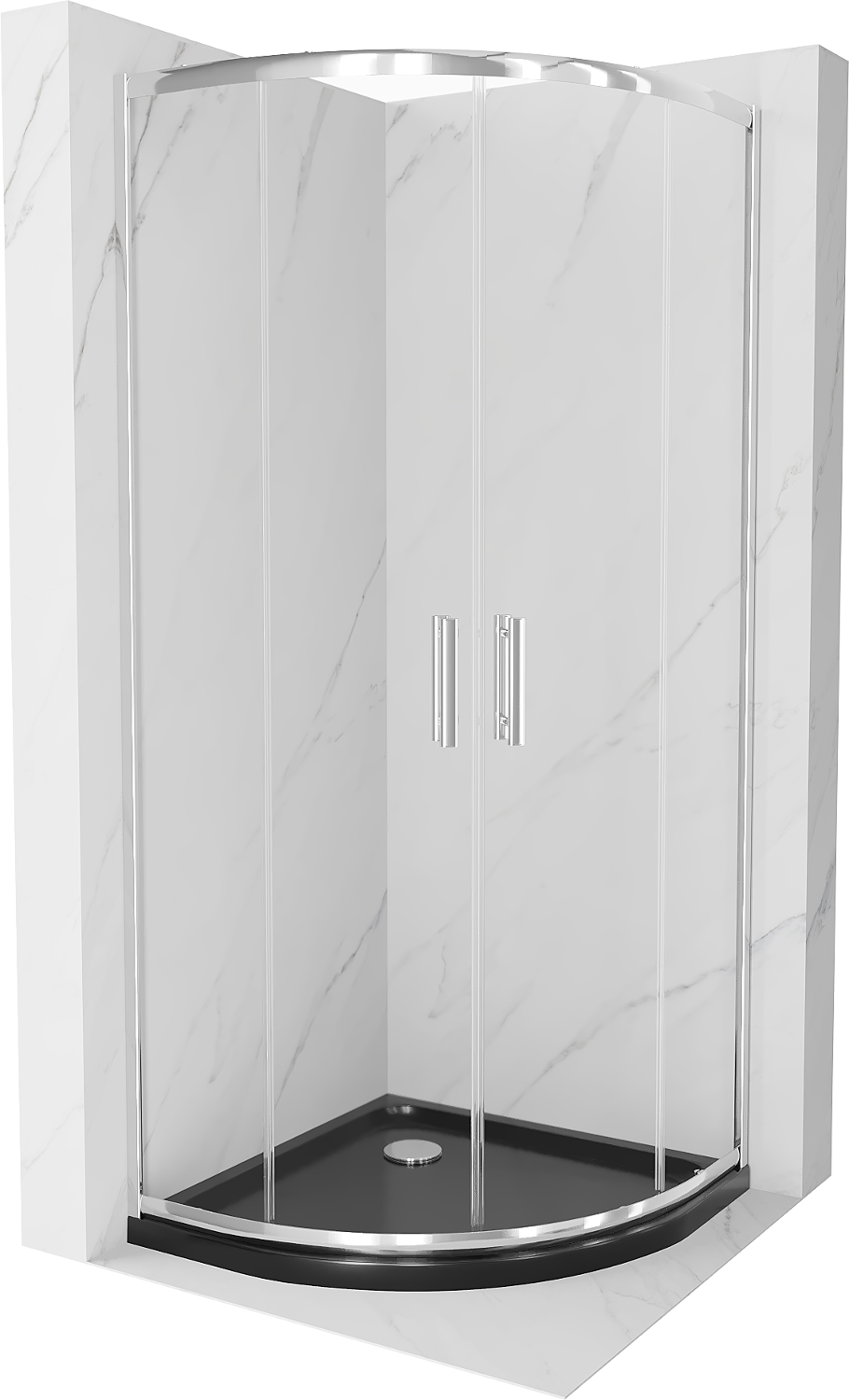 Mexen Rio félköríves zuhanykabin 80 x 80 cm, átlátszó, króm + Flat zuhanytálca, fekete - 863-080-080-01-00-4170