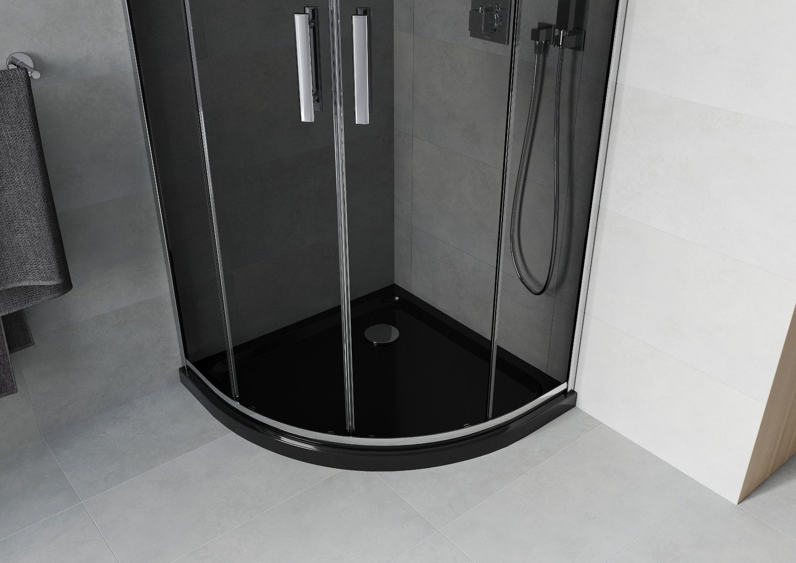 Mexen Rio íves zuhanykabin 90 x 90 cm, grafit, króm + Flat zuhanytálca, fekete - 863-090-090-01-40-4170