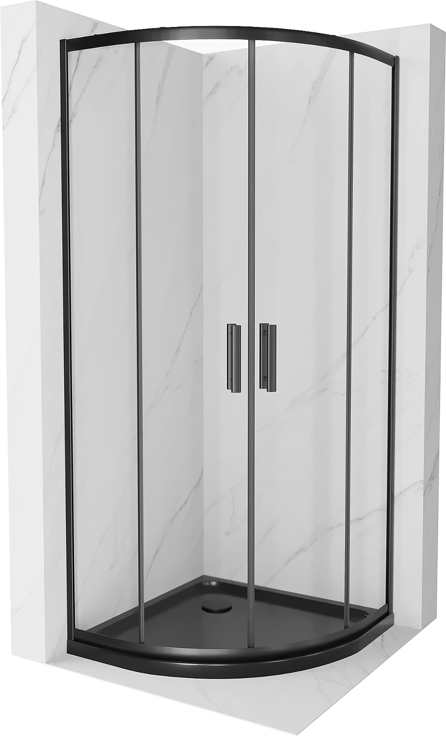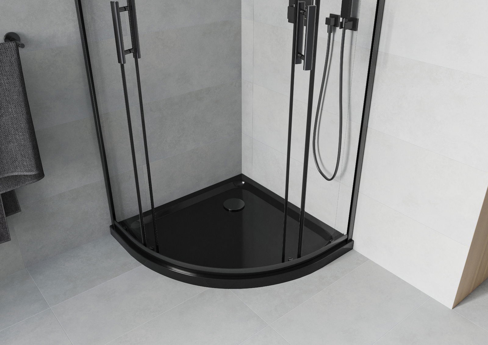 Mexen Rio félköríves zuhanykabin 80 x 80 cm, átlátszó, fekete + lapos tálca, fekete - 863-080-080-70-00-4170B