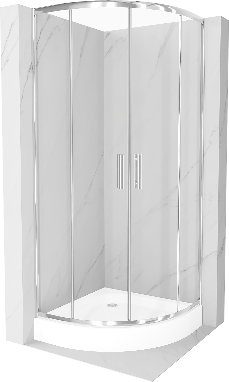 Mexen Rio félköríves zuhanykabin 90 x 90 cm, átlátszó, króm + Rio zuhanytálca, fehér - 863-090-090-01-00-4710