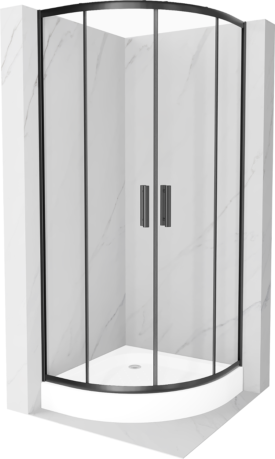 Mexen Rio félköríves zuhanykabin 70 x 70 cm, átlátszó, fekete + Rio zuhanytálca, fehér - 863-070-070-70-00-4710