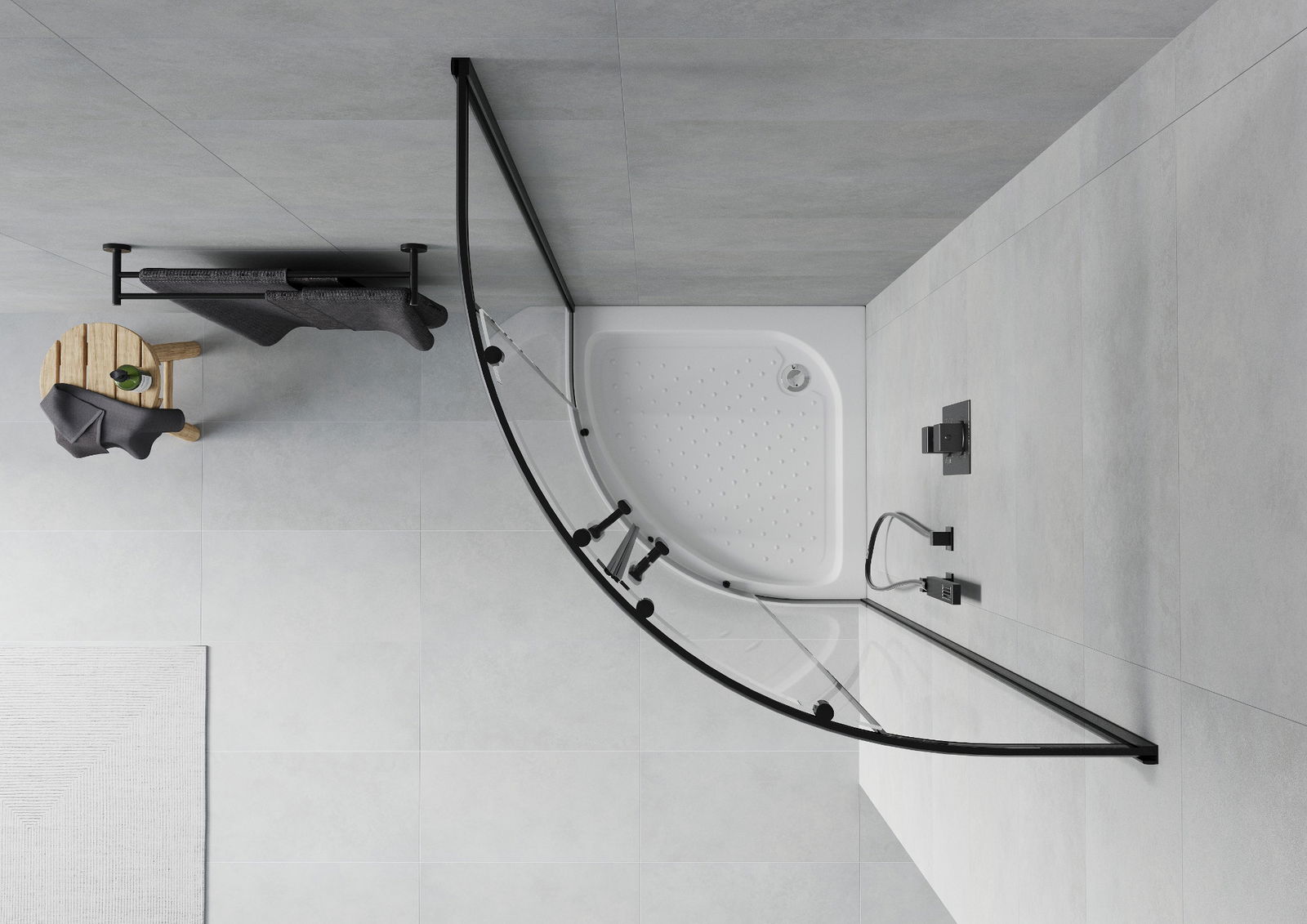 Mexen Rio félköríves zuhanykabin 90 x 90 cm, átlátszó, fekete + Rio zuhanytálca, fehér - 863-090-090-70-00-4710