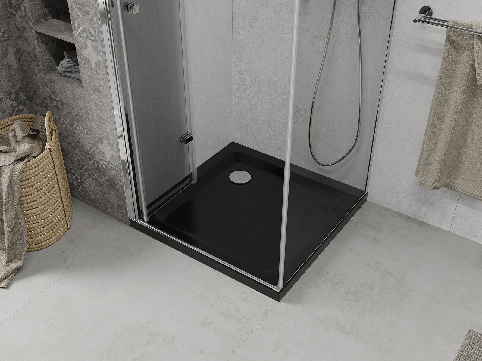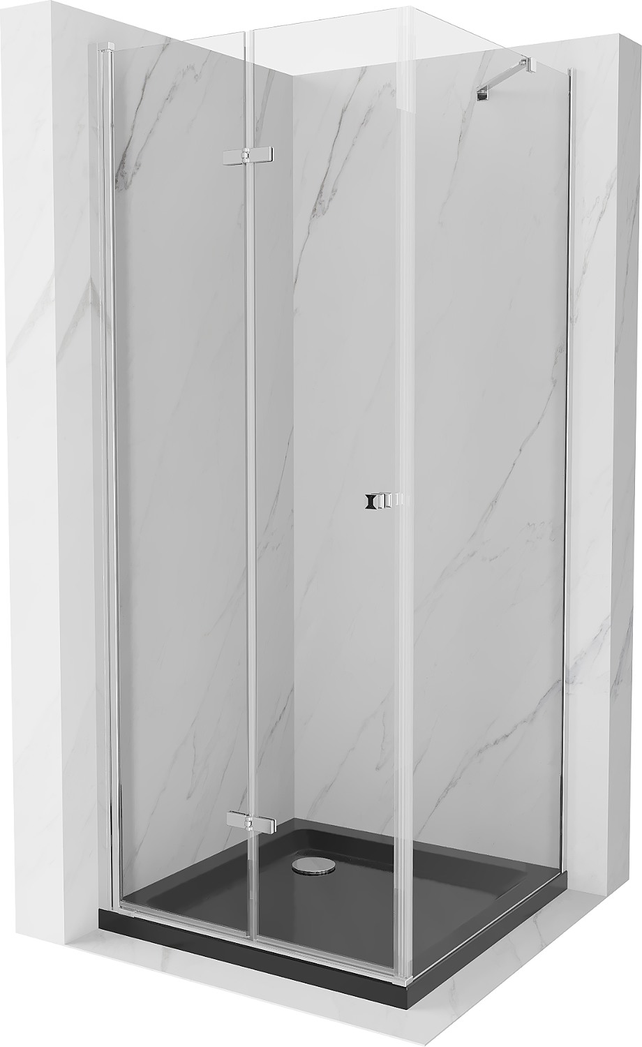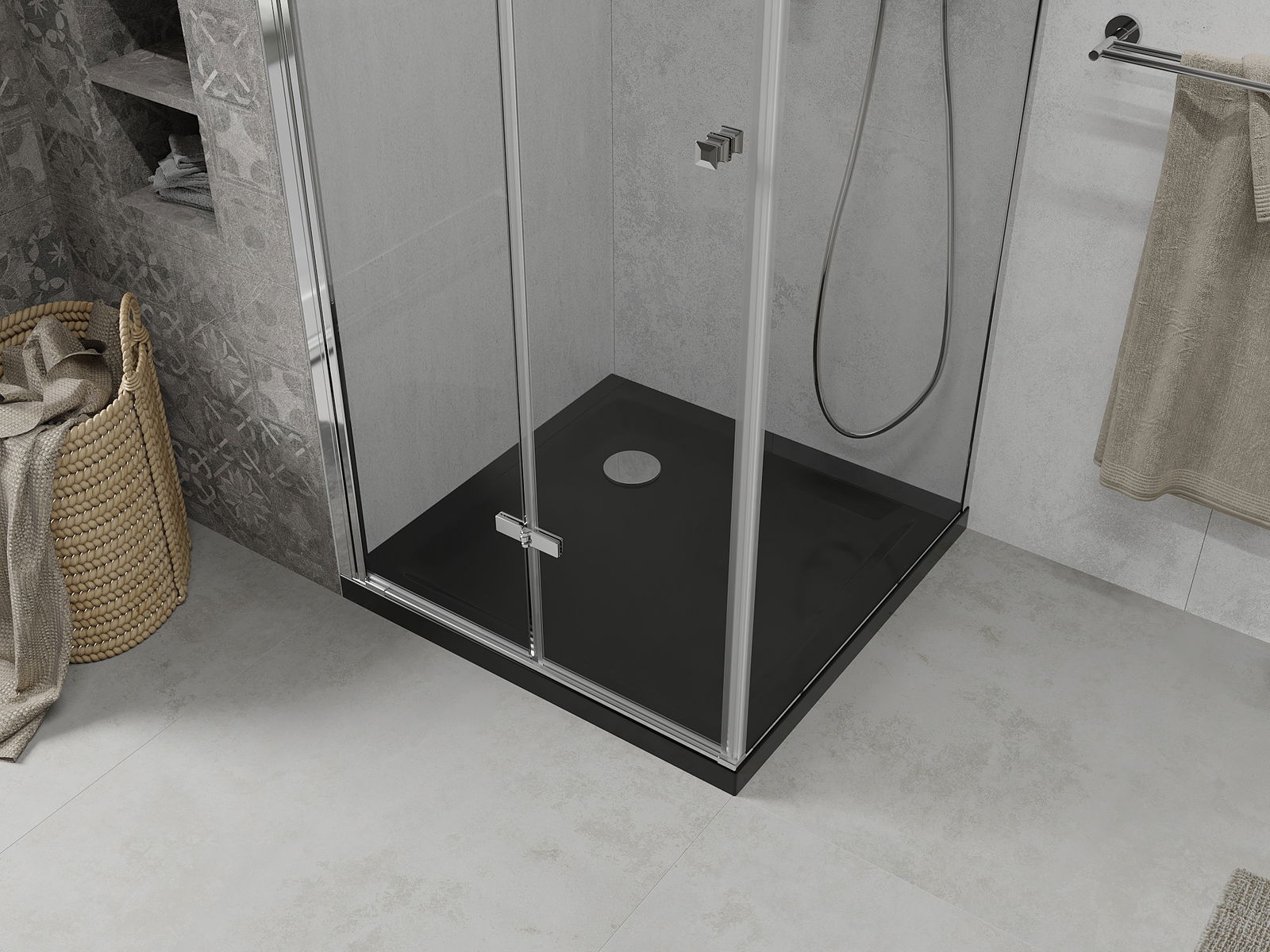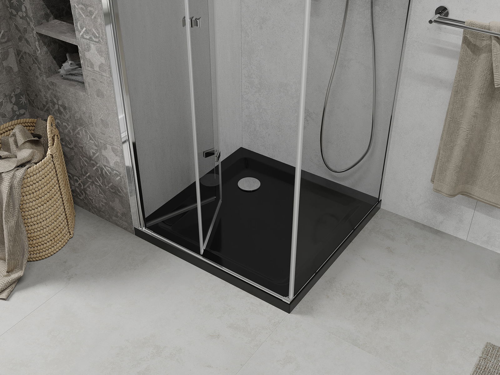 Mexen Lima összecsukható zuhanykabin 90 x 90 cm, átlátszó, króm + Flat zuhanytálca, fekete - 856-090-090-01-00-4070