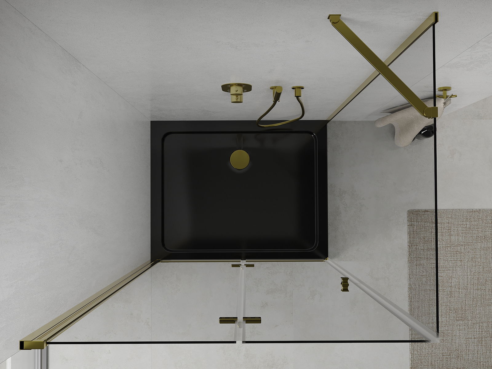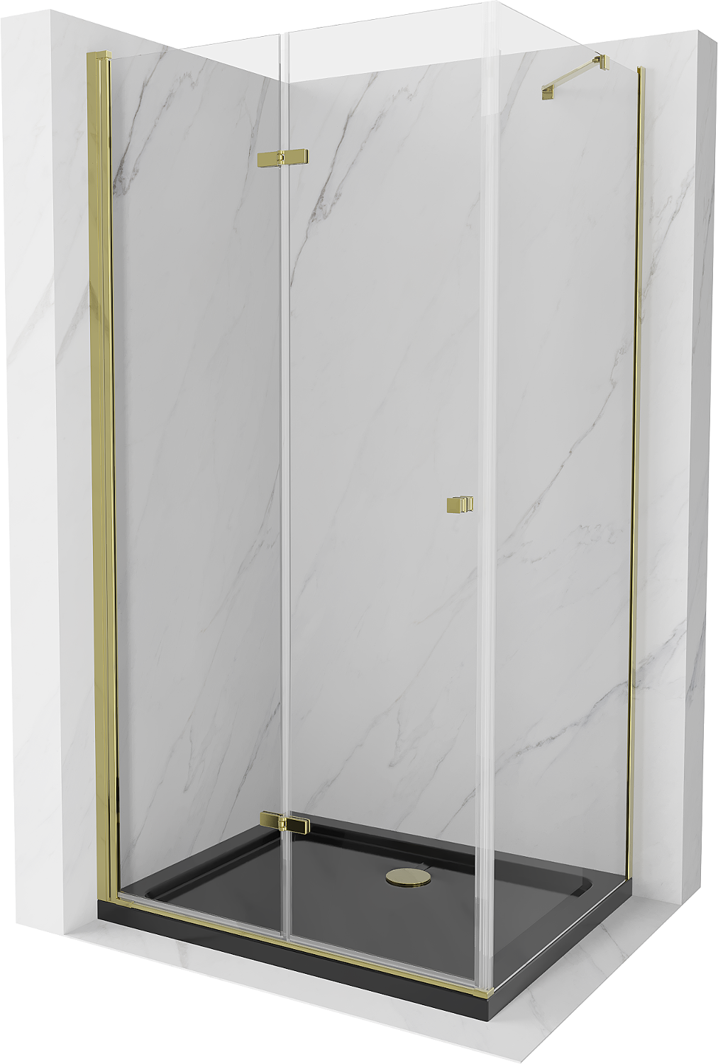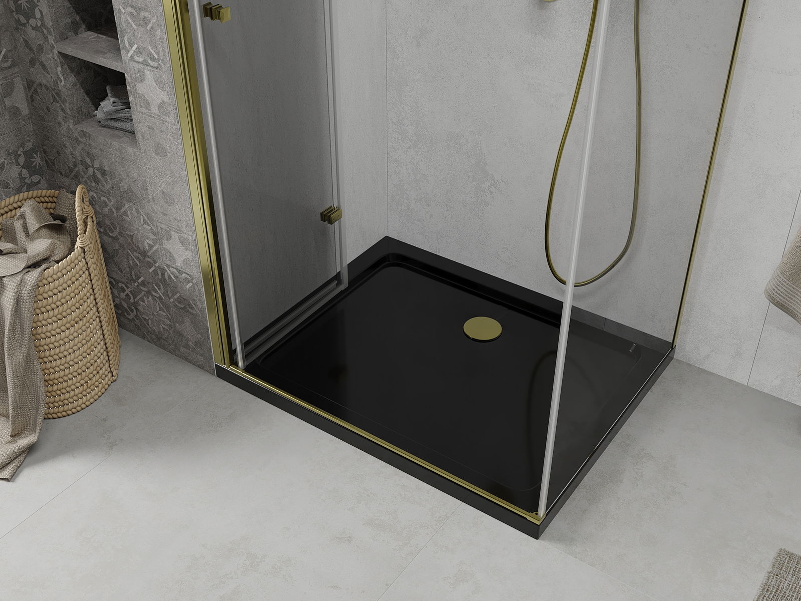 Mexen Lima összecsukható zuhanykabin 100 x 90 cm, átlátszó, arany + Flat zuhanytálca, fekete - 856-100-090-50-00-4070G