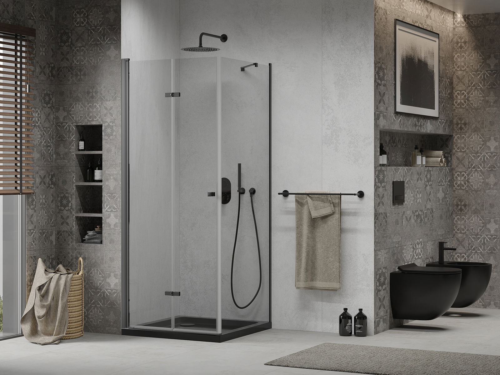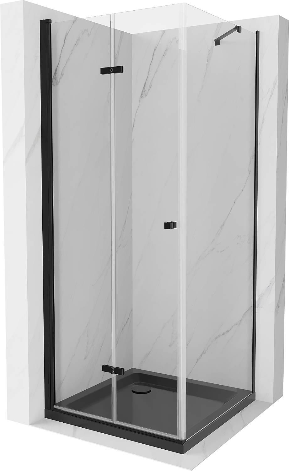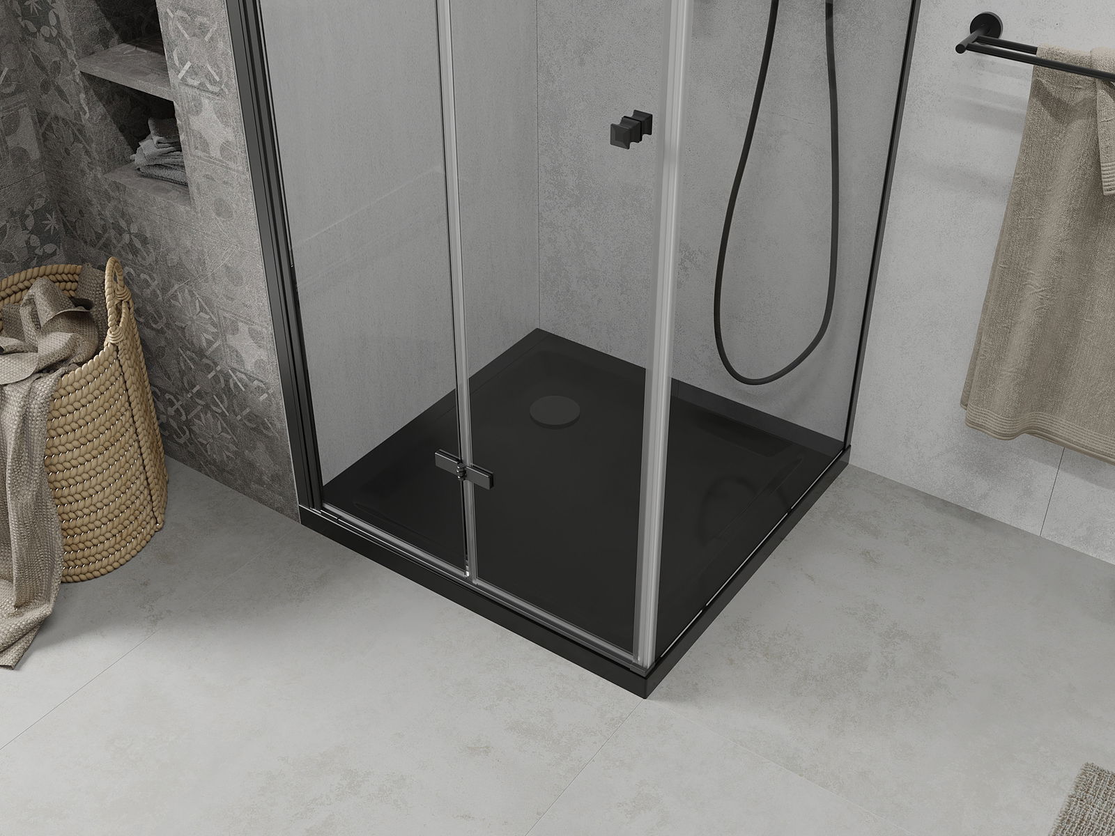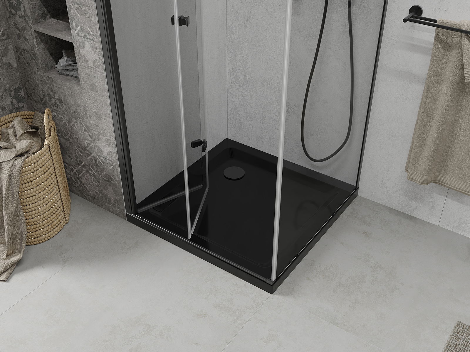 Mexen Lima 90 x 90 cm összecsukható zuhanykabin, átlátszó, fekete + Flat, fekete zuhanytálca - 856-090-090-70-00-4070B