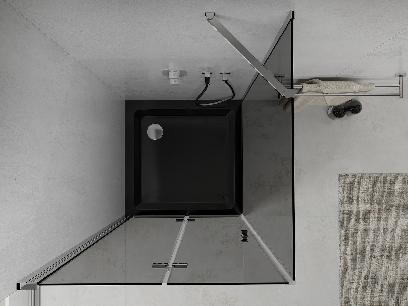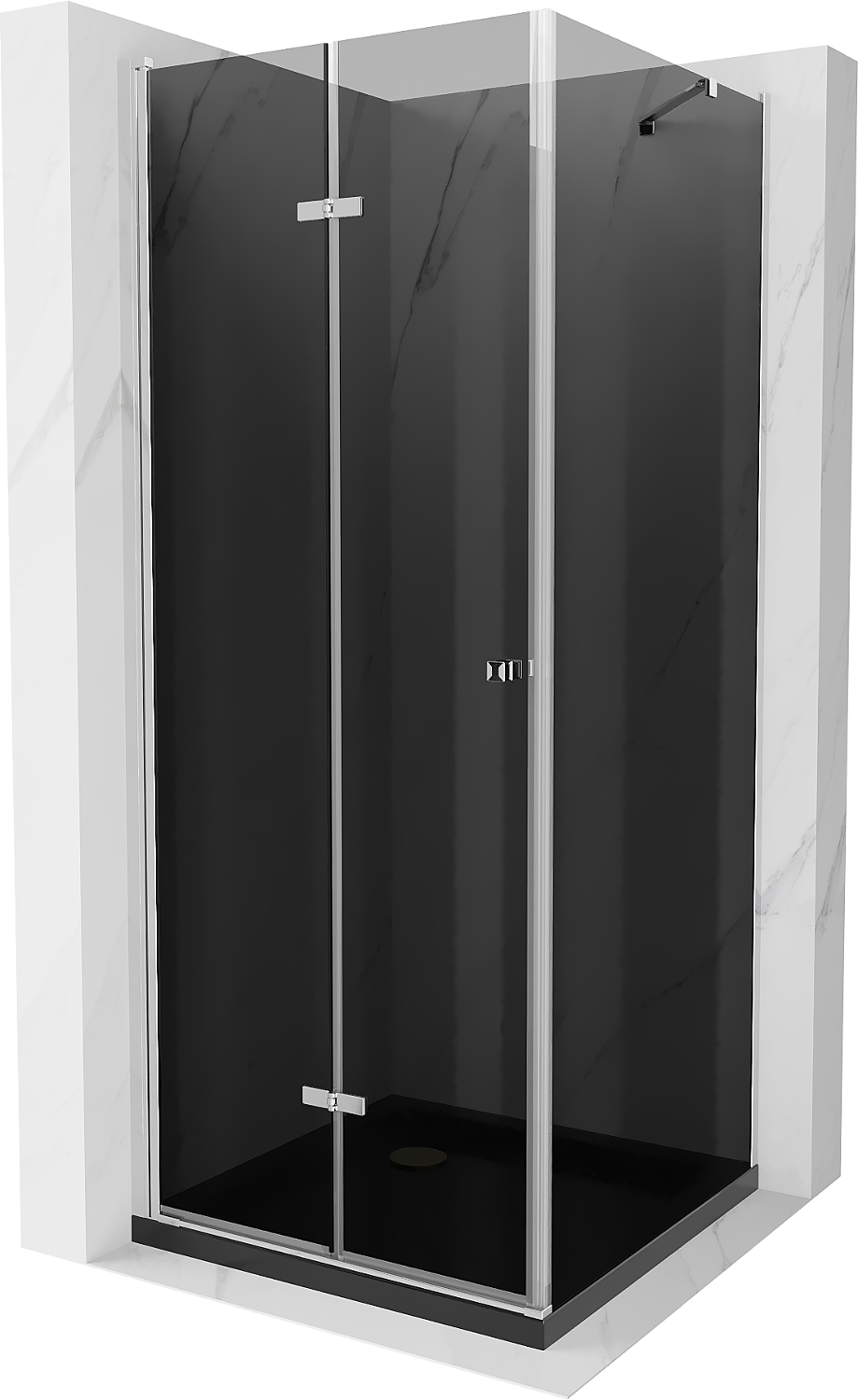 Mexen Lima harmonikazuhany 80 x 80 cm, grafit, króm + Flat zuhanytálca, fekete - 856-080-080-01-40-4070
