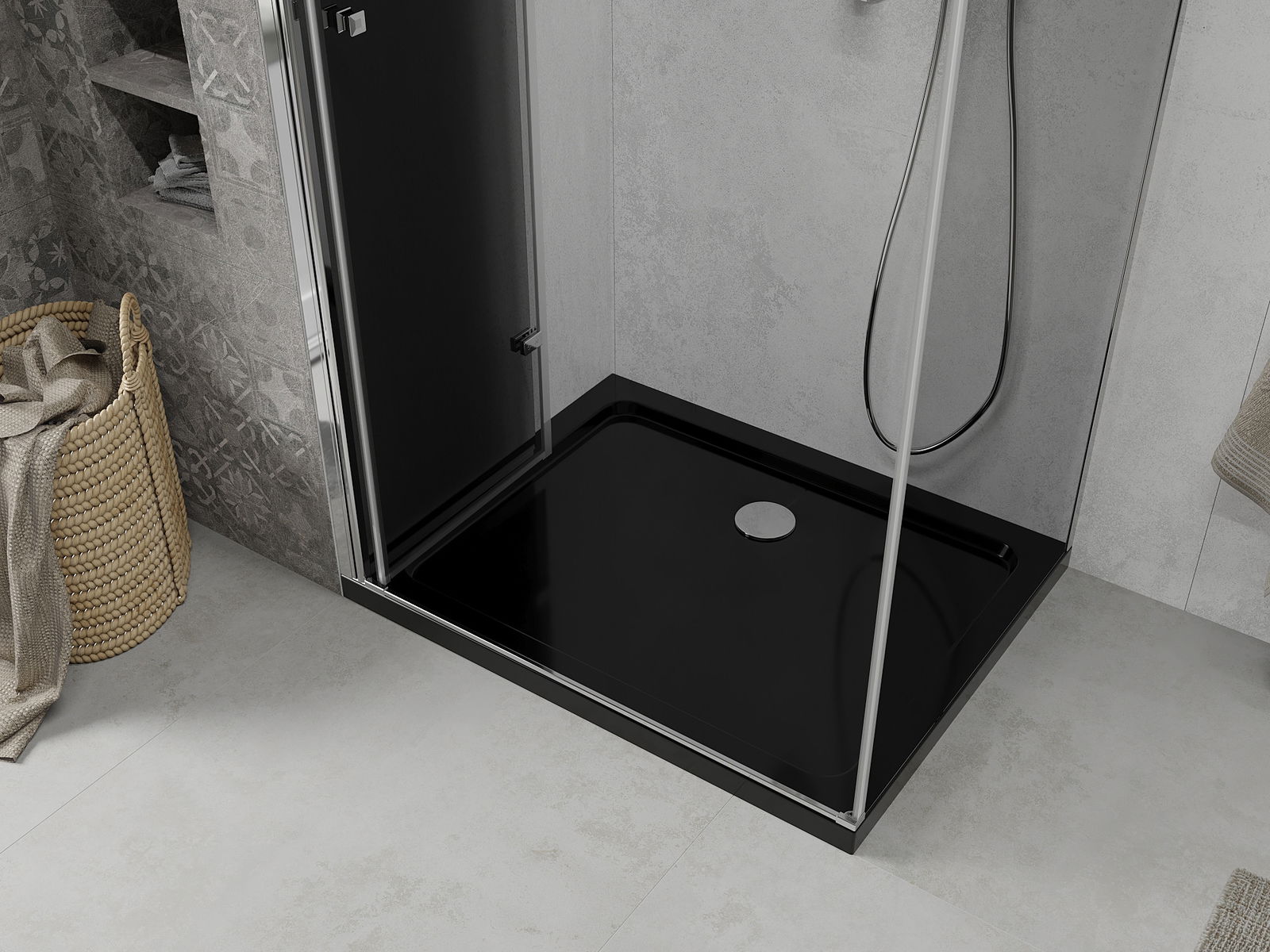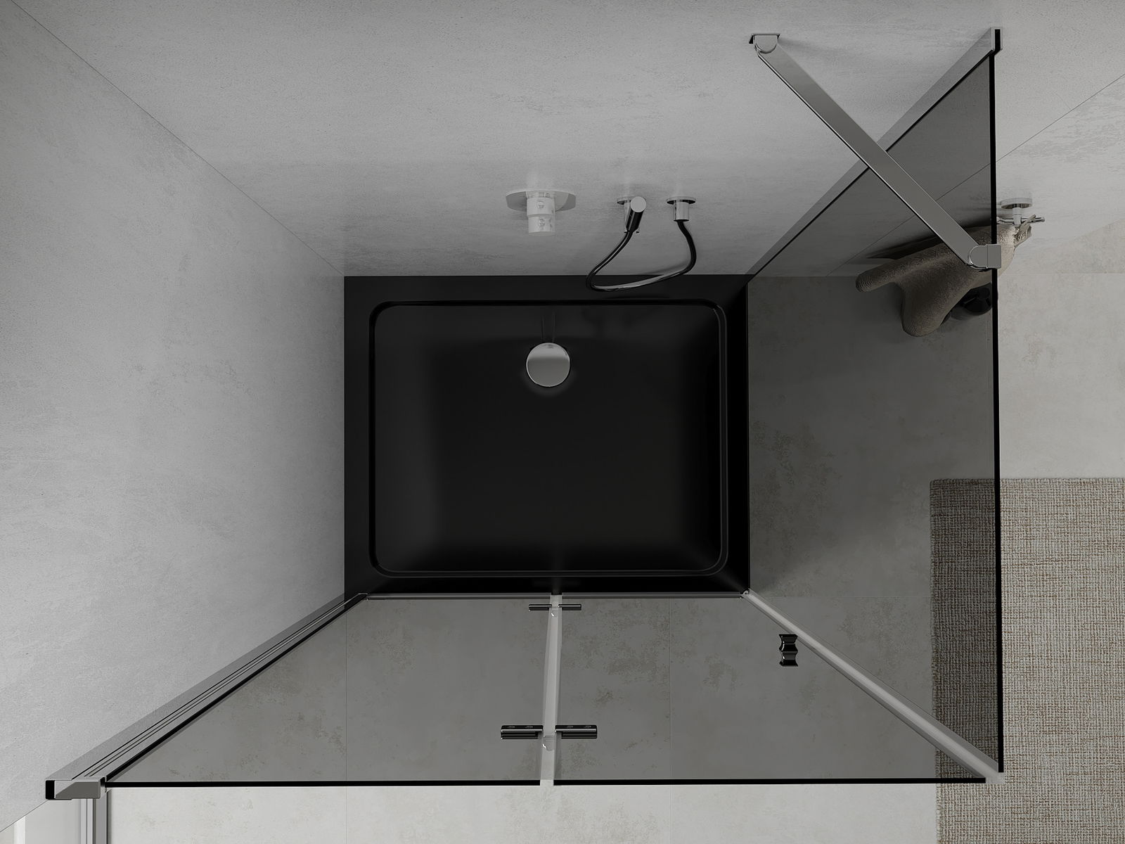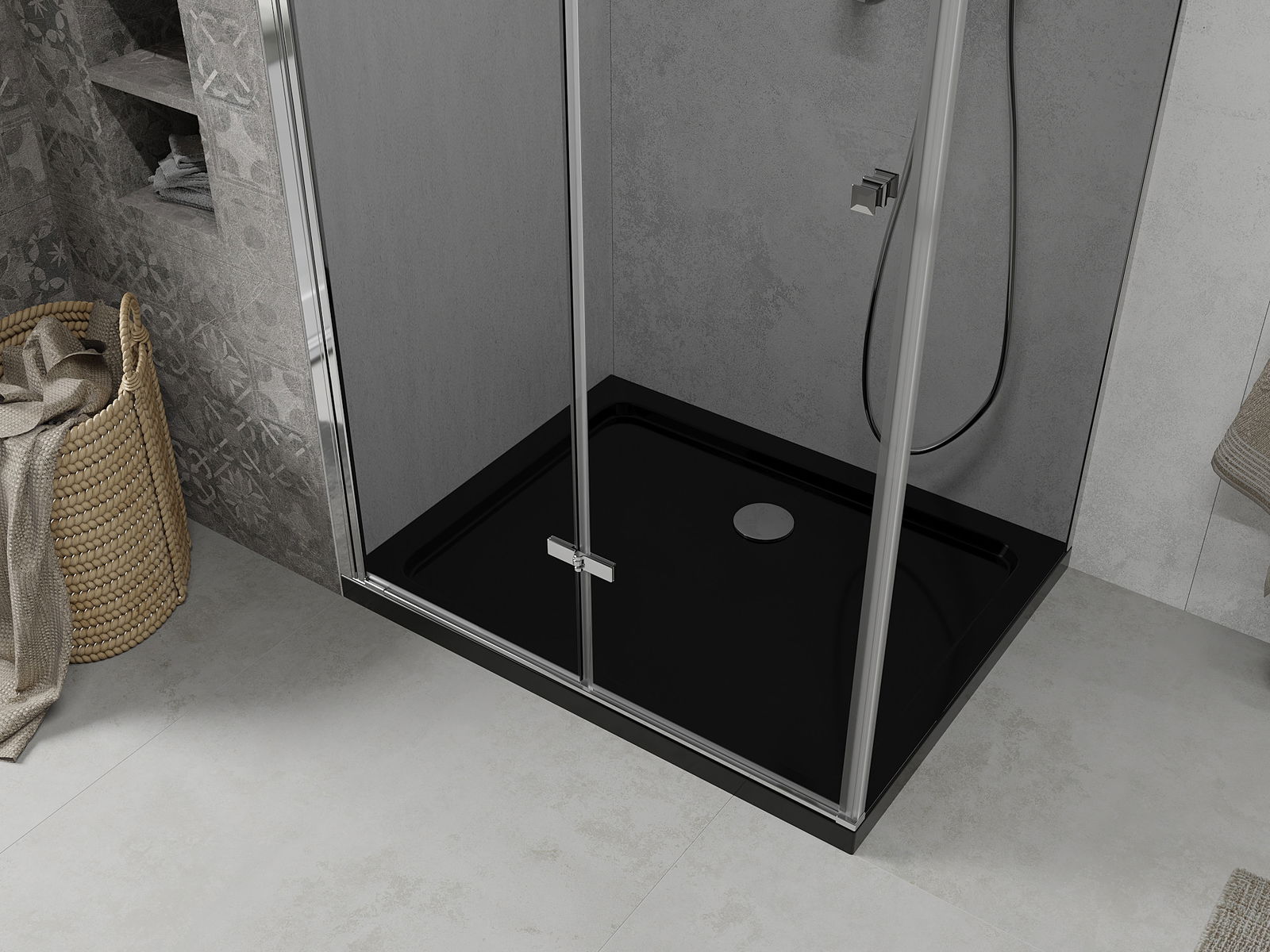 Mexen Lima összecsukható zuhanykabin 90 x 100 cm, grafit, króm + Flat zuhanytálca, fekete - 856-090-100-01-40-4070