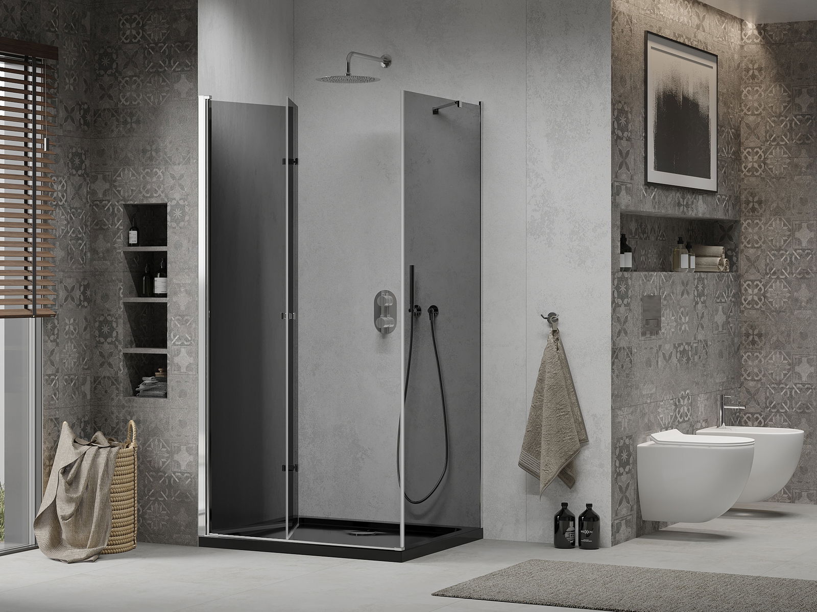 A praktikus és kényelmes fogantyú tartós és ellenálló fémből készült. A divatos forma a profilok színéhez igazított kivitelezéssel együtt modern és stílusos megjelenést kölcsönöz az egésznek, kiemelve minden fürdőszoba esztétikáját.