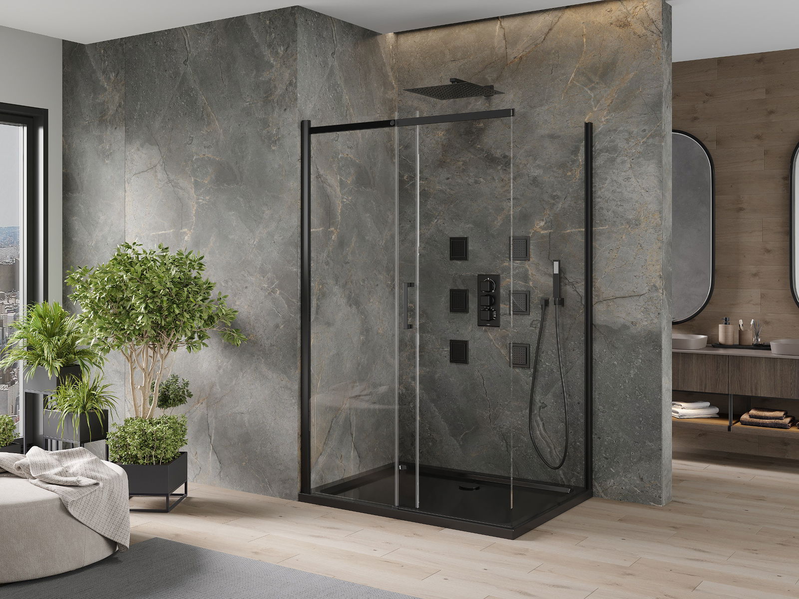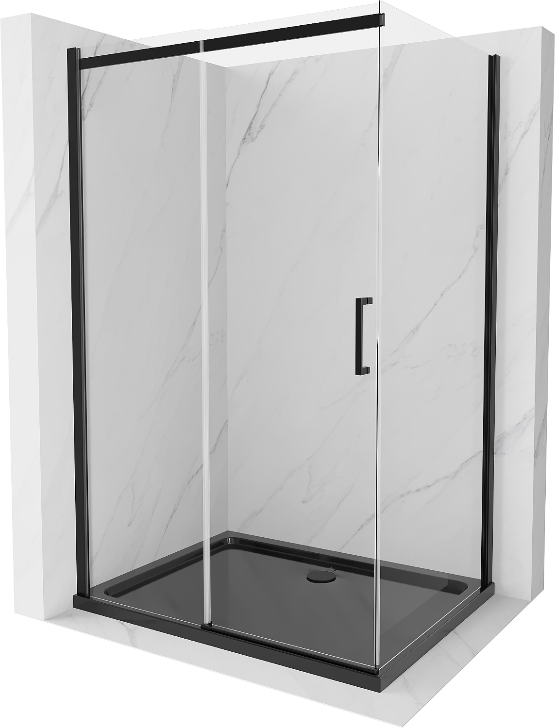 Mexen Omega tolóajtós zuhanykabin 100 x 90 cm, átlátszó, fekete + Flat zuhanytálca, fekete - 825-100-090-70-00-4070B