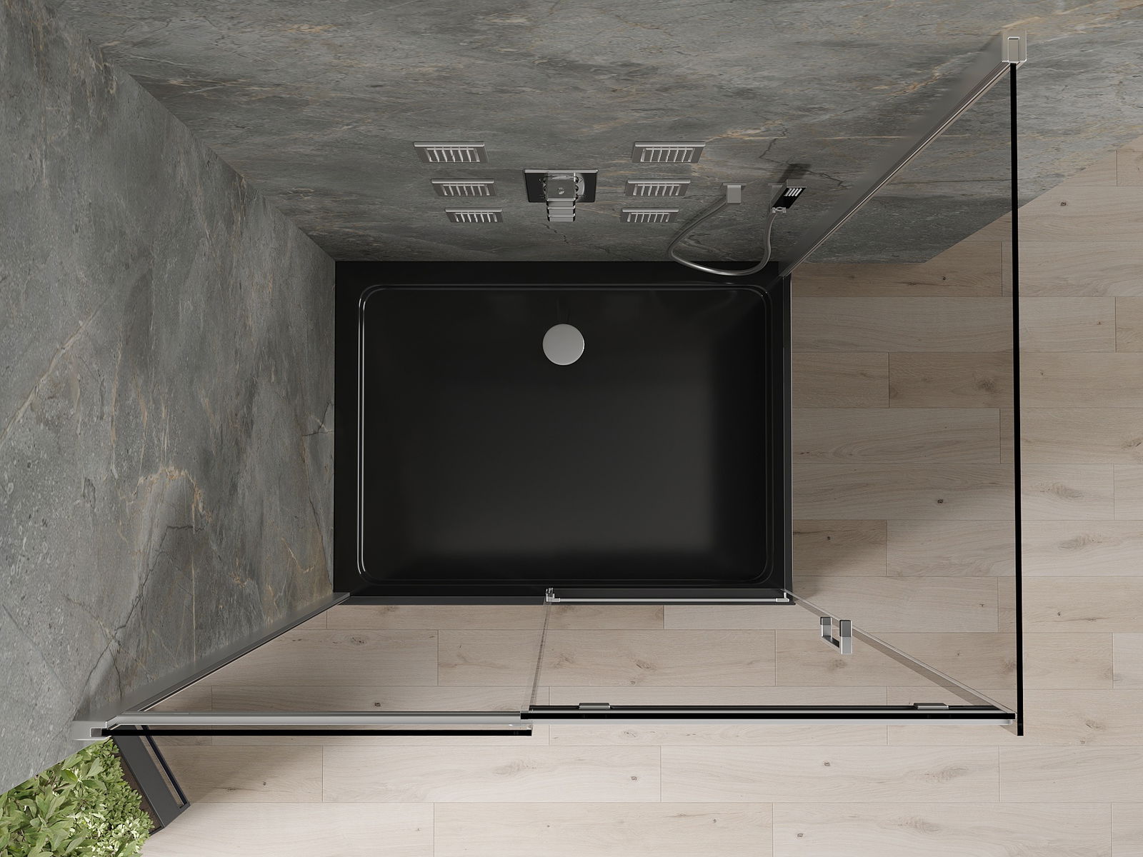 Mexen Omega 100 x 80 cm-es, tolóajtós zuhanykabin, grafit, króm + Flat zuhanytálca, fekete - 825-100-080-01-40-4070