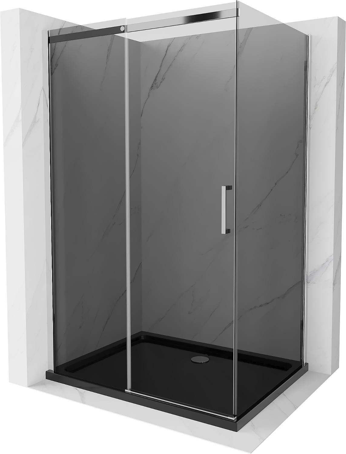 Mexen Omega toló zuhanykabin 120 x 90 cm, grafit, króm + Flat zuhanytálca, fekete - 825-120-090-01-40-4070