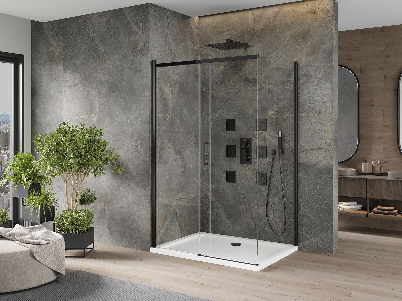 A zuhany tálcának alacsony küszöbértéke van, ami megkönnyíti a belépést és a zuhany elhagyását. Egyedülálló és időtlen kivitelben adja a szobát, így a fürdőszobát kényelmes és esztétikai helyévé teszi a napi relaxációhoz.