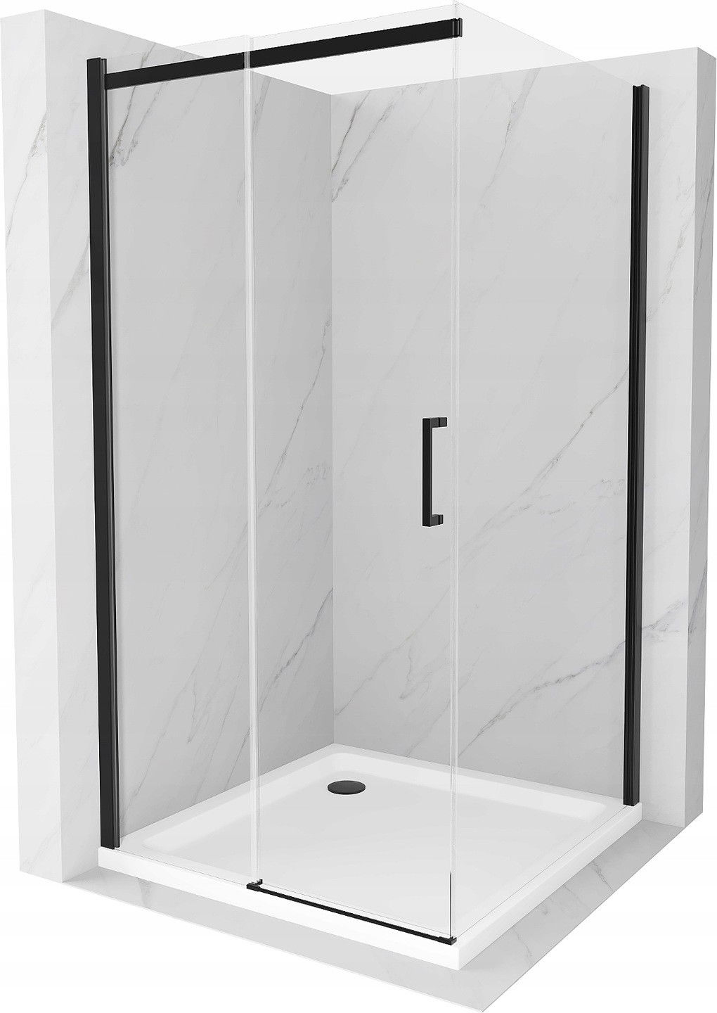 Mexen Omega tolóajtós zuhanykabin 100 x 100 cm, átlátszó, fekete + Flat zuhanytálca, fehér - 825-100-100-70-00-4010B