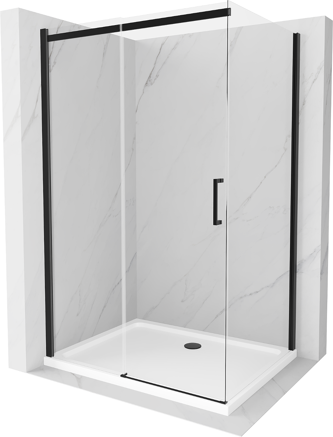 Mexen Omega tolóajtós zuhanykabin 120 x 80 cm, átlátszó, fekete + Flat zuhanytálca, fehér - 825-120-080-70-00-4010B