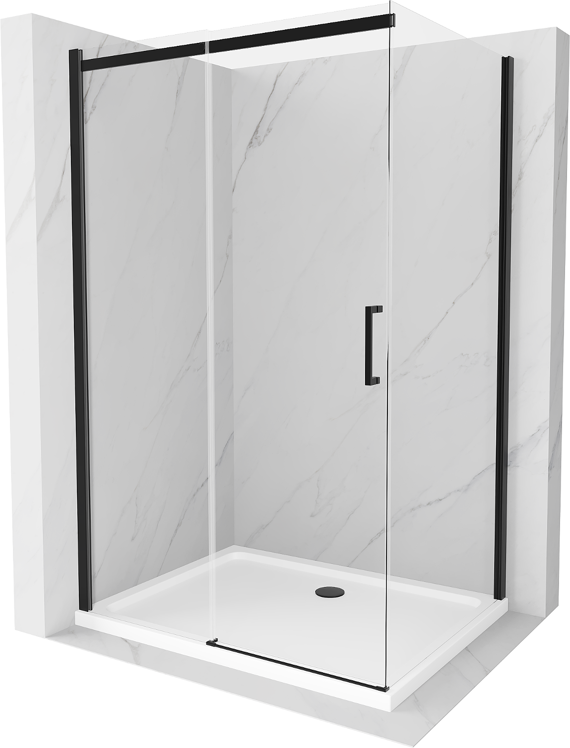 Mexen Omega tolóajtós zuhanykabin 120 x 90 cm, átlátszó, fekete + Flat zuhanytálca, fehér - 825-120-090-70-00-4010B