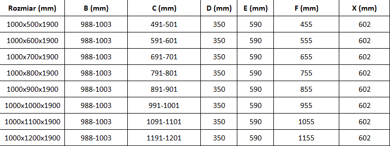 Méret: 100x90 cm (ajtó 100 cm, fal 90 cm)