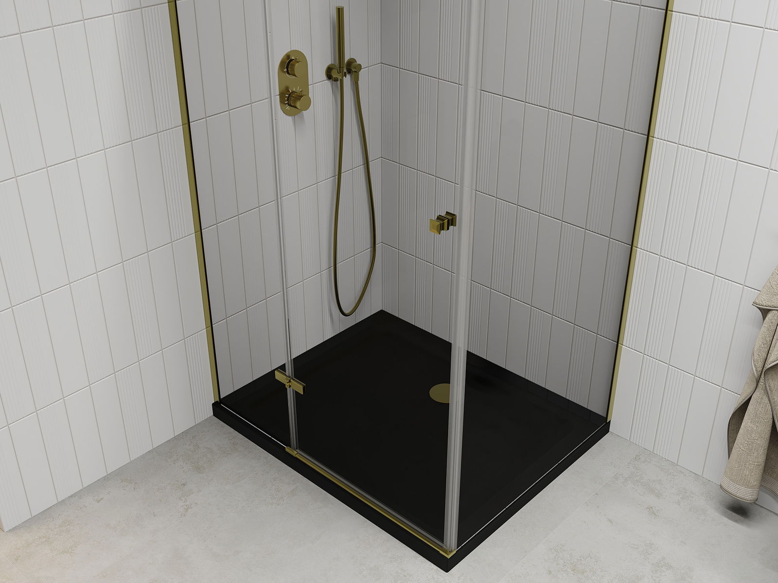 Mexen Roma nyíló zuhanykabin 90 x 100 cm, átlátszó, arany + Flat zuhanytálca, fekete - 854-090-100-50-00-4070G