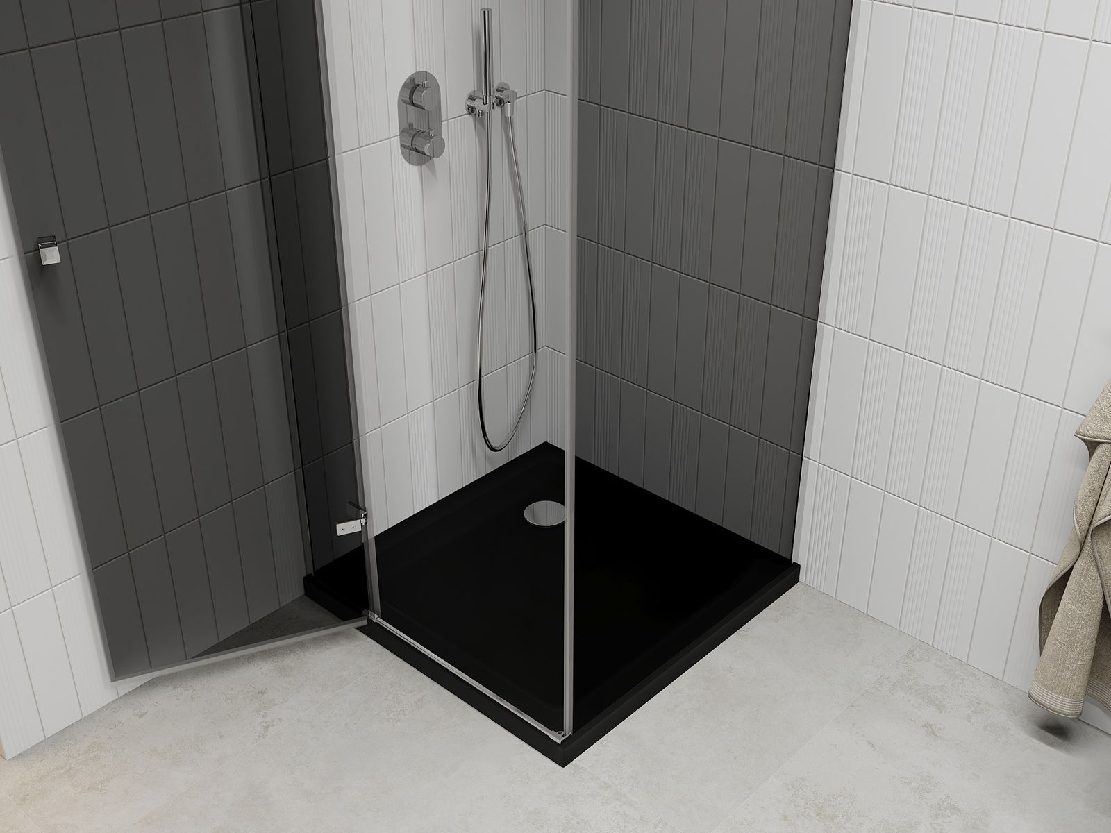 Mexen Roma zuhanykabin nyíló ajtóval 90 x 90 cm, grafit, króm + Flat zuhanytálca, fekete - 854-090-090-01-40-4070