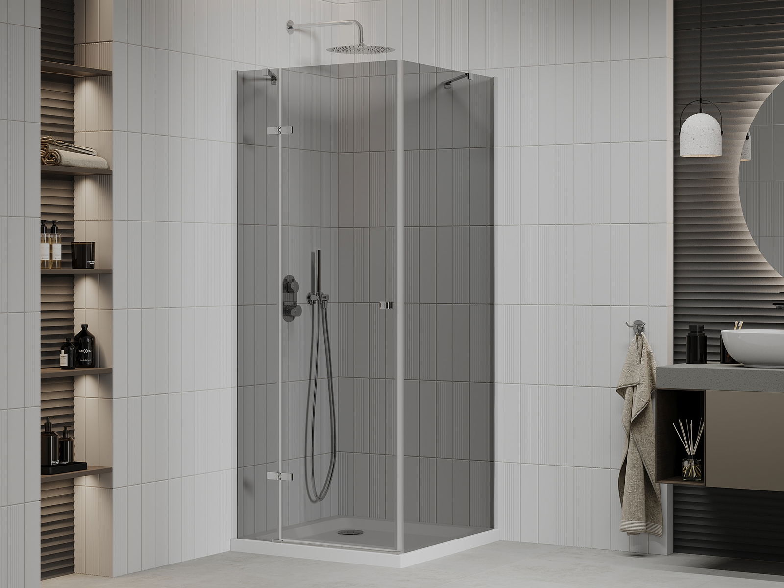 A praktikus és kényelmes fogantyú tartós és ellenálló fémből készült. A divatos forma és a profilok színéhez igazított bevonat modern és stílusos megjelenést ad, hangsúlyozva minden fürdőszoba esztétikáját.