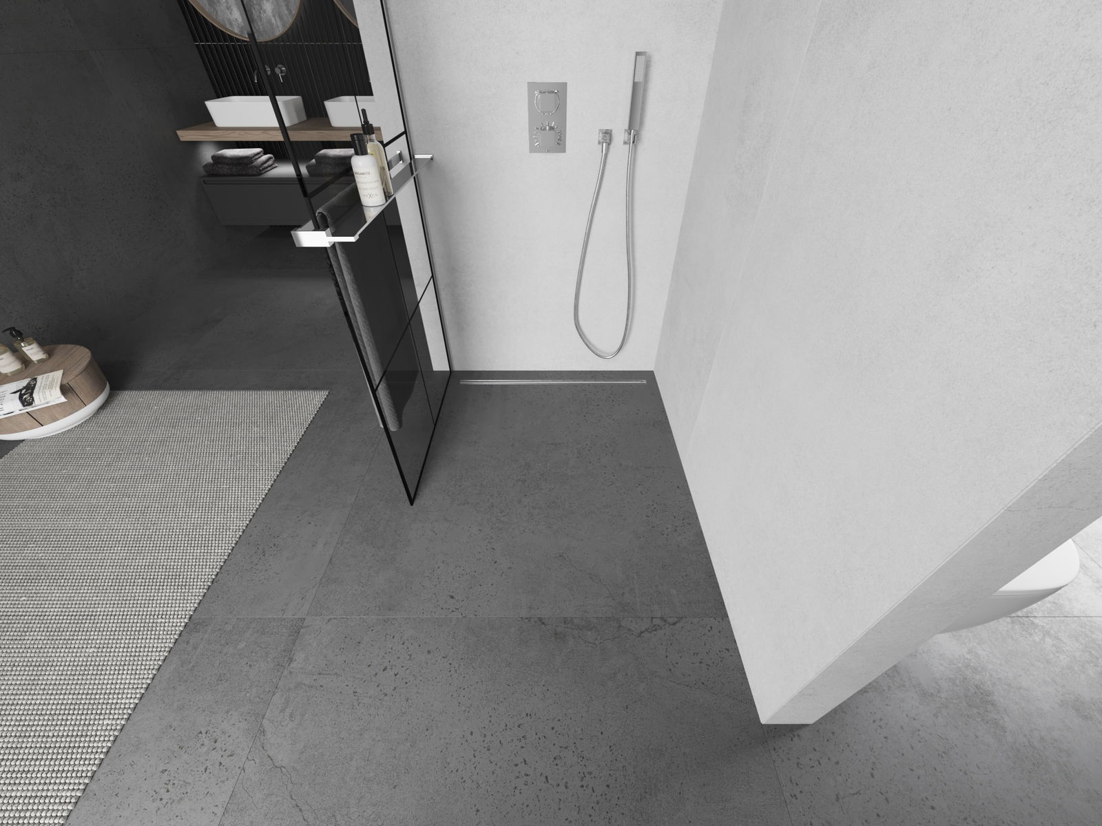 A zuhanyfalán lévő törülközőtartó nagyon praktikus és kényelmes megoldás. A fürdés során a törülköző mindig kéznél van, megkönnyítve a szabad felhasználást. Ez egy ideális hely a törülköző kiszáradására.