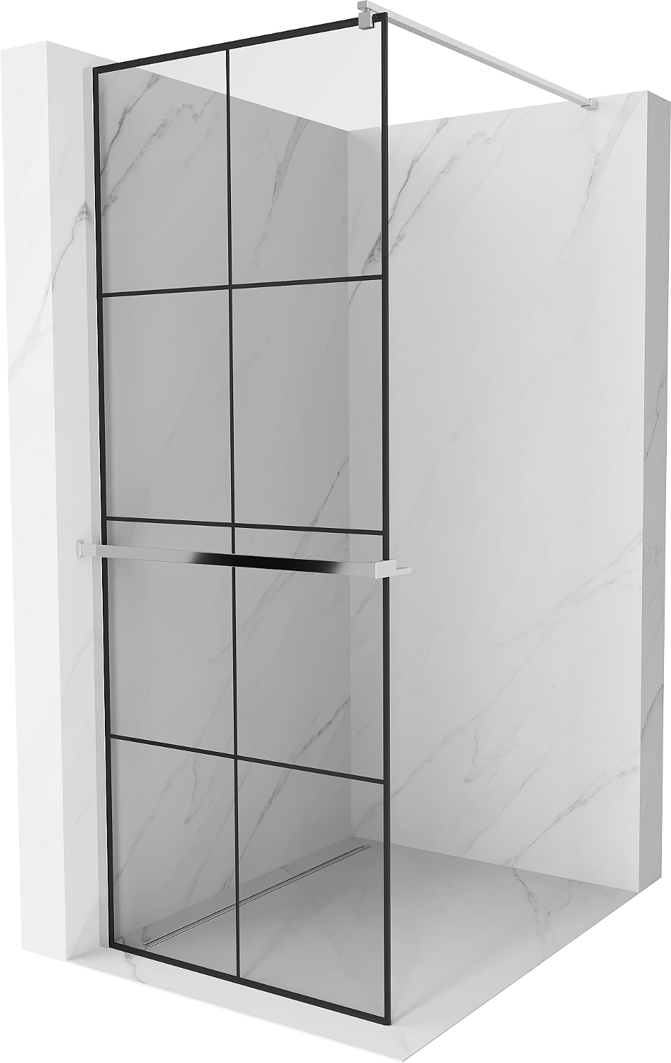 Mexen Kioto+ zuhanyfal polccal Walk-in 90 x 200 cm, fekete rács, króm - 800-090-121-01-77