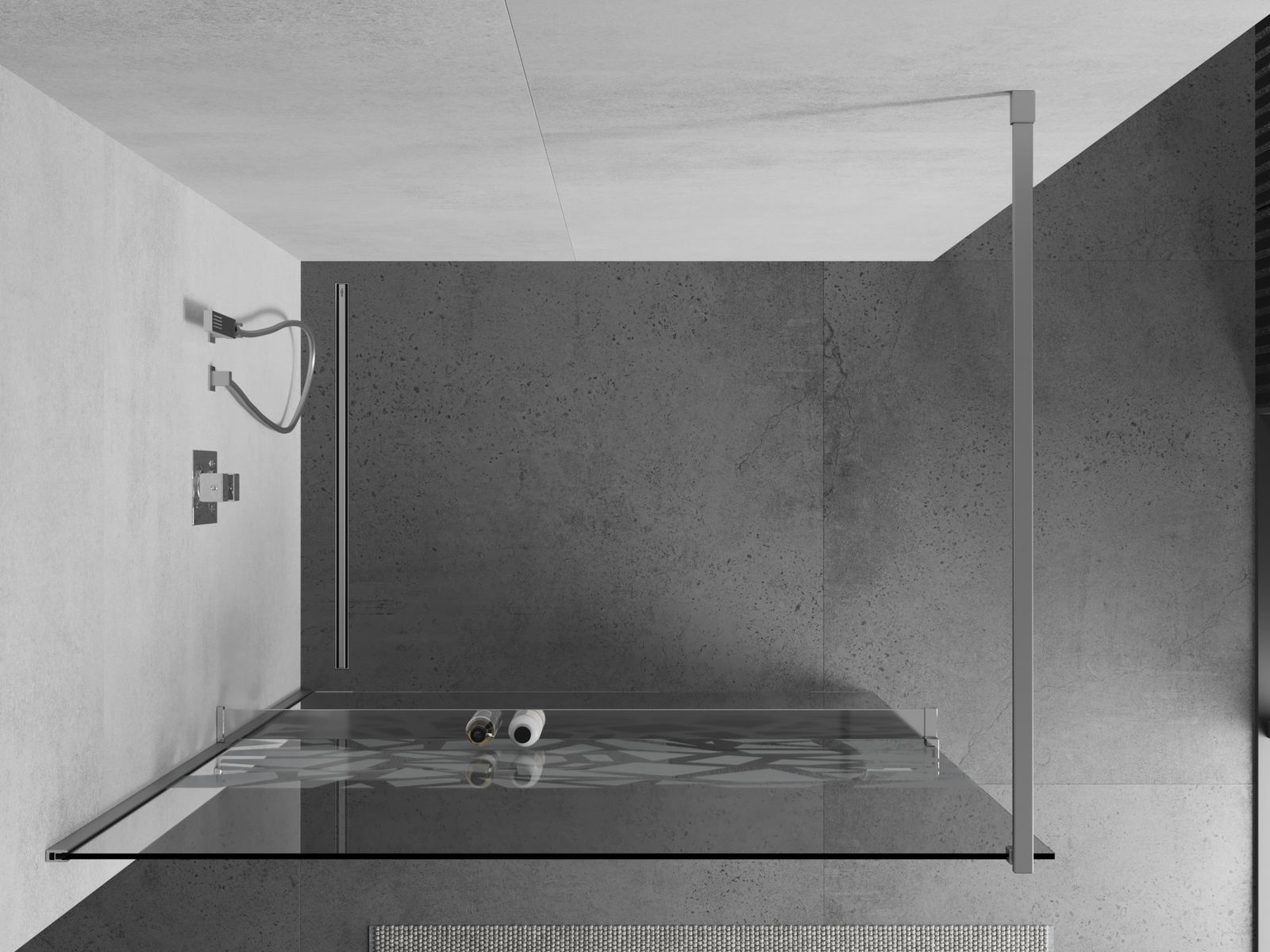 Mexen Kioto+ zuhanyfal polccal Walk-in 90 x 200 cm, fehér minta, króm - 800-090-121-01-85